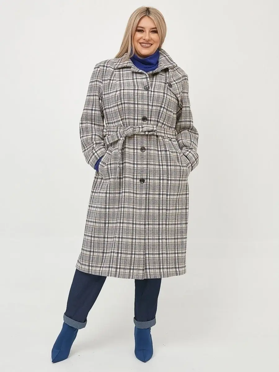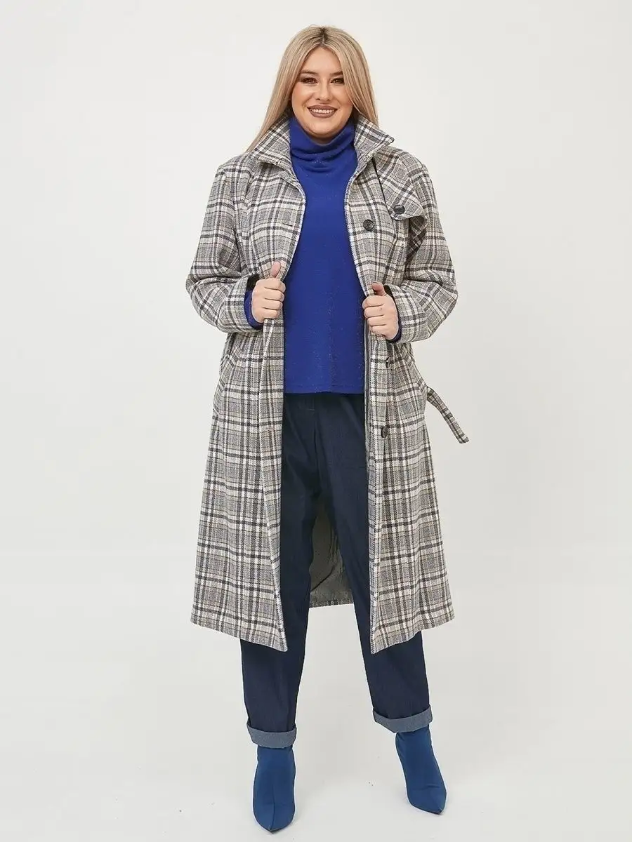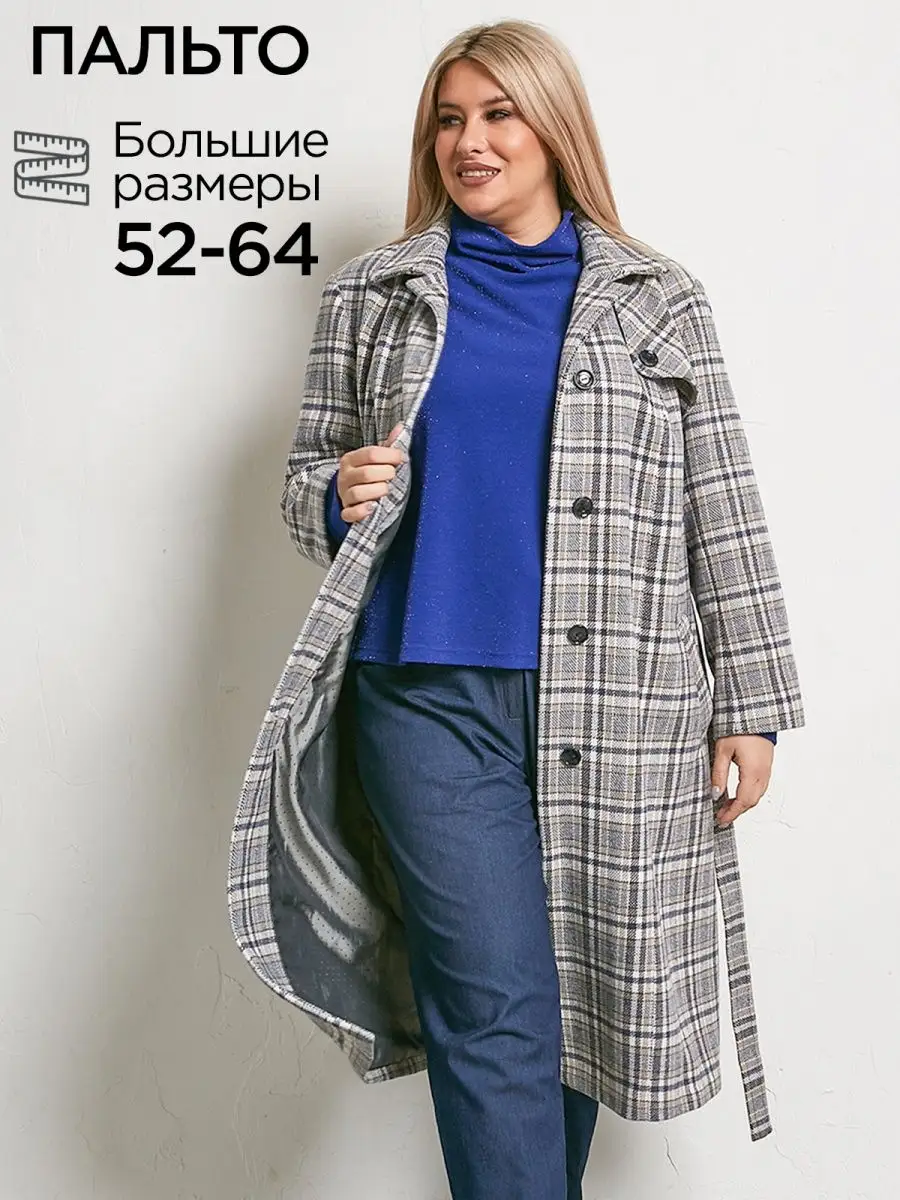 Описание: Классическое пальто полуприлегающего силуэта из костюмной ткани удачный выбор для вашего базового гардероба. Модель придаёт элегантность любому образу и зрительно вытягивает фигуру. Пальто женское длинное с поясом гармонично сочетается с офисным стилем, кэжуал или спортшик. Демисезонное пальто оверсайз на подкладе подойдет для прогулок на весну и теплую осень. Стильное пальто в клетку - универсальная верхняя одежда в межсезонье. Пальто просторного кроя подойдет для девушек пышных форм, для полных женщин и как одежда для беременных. Лекала разработаны с учётом особенностей фигур женщин нестандартных размеров.В нашем каталоге представлена женская одежда больших размеров, одежда для девушек и женщин больших размеров, плюс сайз (plus size) на все случаи жизни в размерах от 52 до 74. Сделано в России на собственном производстве. УВАЖАЕМЫЕ ПОКУПАТЕЛИ! Мы проверяем товар на брак и бережно упаковываем перед отправкой на склад. Не спешите оставить негативный отзыв если: задержалась доставка, упаковка повреждена или перепутан товар. Просьба обращаться в службу поддержки, Вам оперативно помогут.