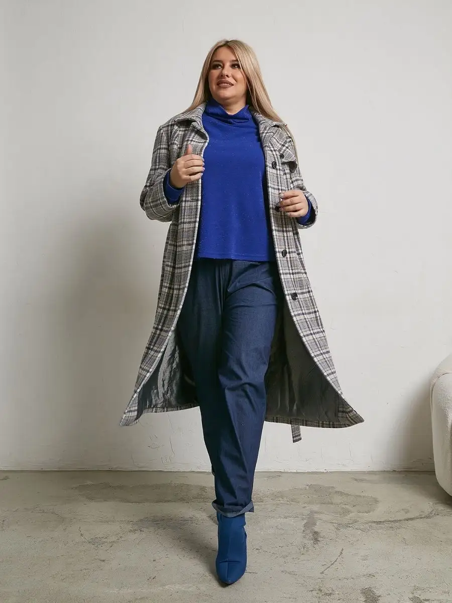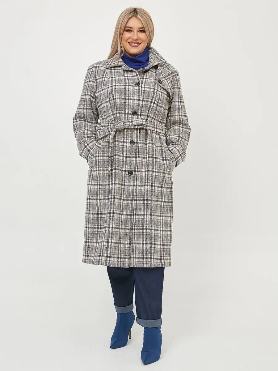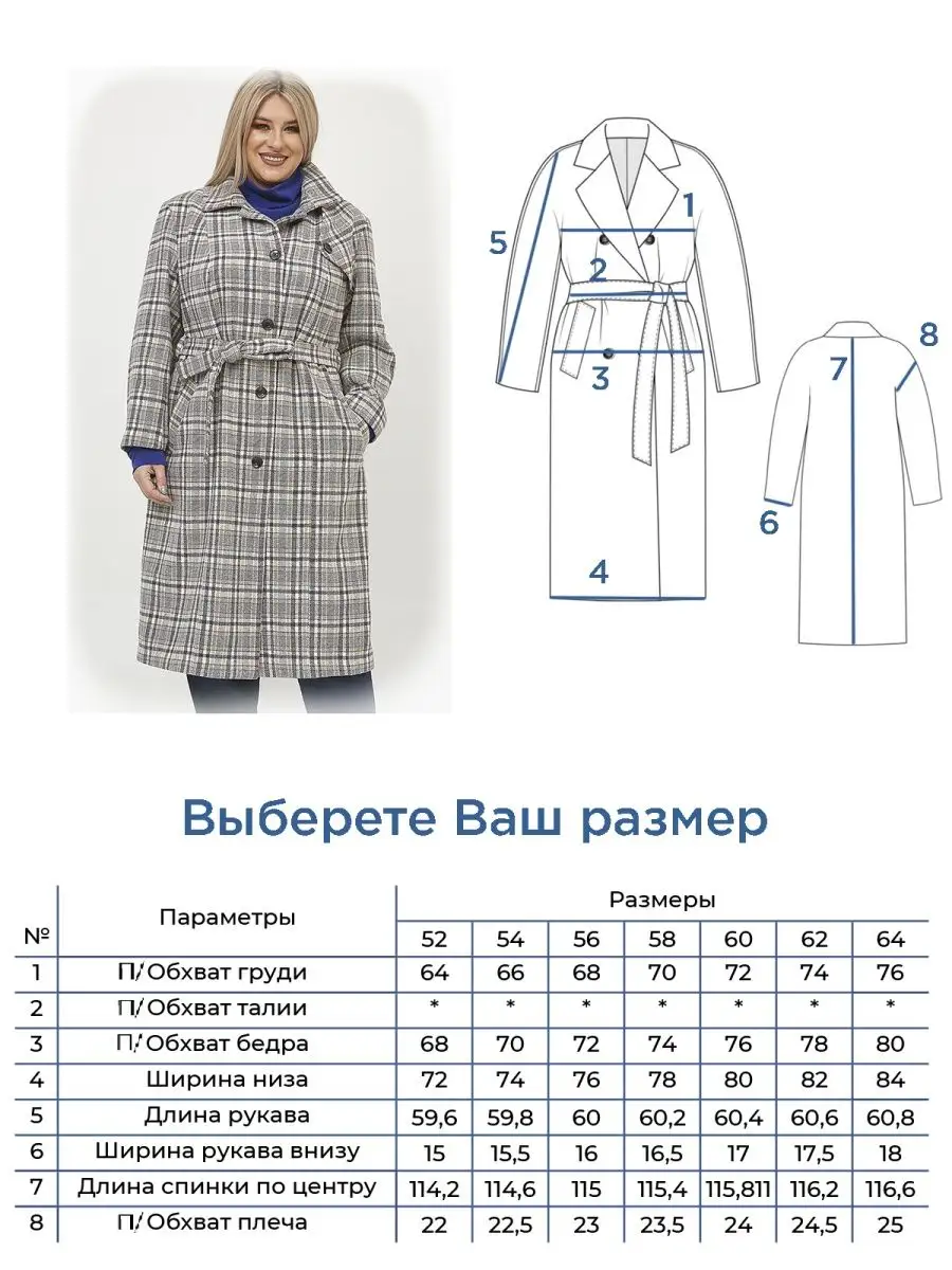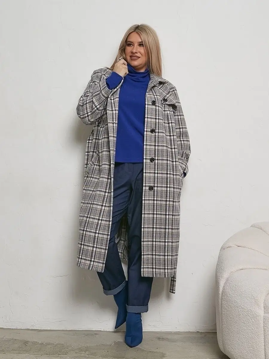 Описание: Классическое пальто полуприлегающего силуэта из костюмной ткани удачный выбор для вашего базового гардероба. Модель придаёт элегантность любому образу и зрительно вытягивает фигуру. Пальто женское длинное с поясом гармонично сочетается с офисным стилем, кэжуал или спортшик. Демисезонное пальто оверсайз на подкладе подойдет для прогулок на весну и теплую осень. Стильное пальто в клетку - универсальная верхняя одежда в межсезонье. Пальто просторного кроя подойдет для девушек пышных форм, для полных женщин и как одежда для беременных. Лекала разработаны с учётом особенностей фигур женщин нестандартных размеров.В нашем каталоге представлена женская одежда больших размеров, одежда для девушек и женщин больших размеров, плюс сайз (plus size) на все случаи жизни в размерах от 52 до 74. Сделано в России на собственном производстве. УВАЖАЕМЫЕ ПОКУПАТЕЛИ! Мы проверяем товар на брак и бережно упаковываем перед отправкой на склад. Не спешите оставить негативный отзыв если: задержалась доставка, упаковка повреждена или перепутан товар. Просьба обращаться в службу поддержки, Вам оперативно помогут.