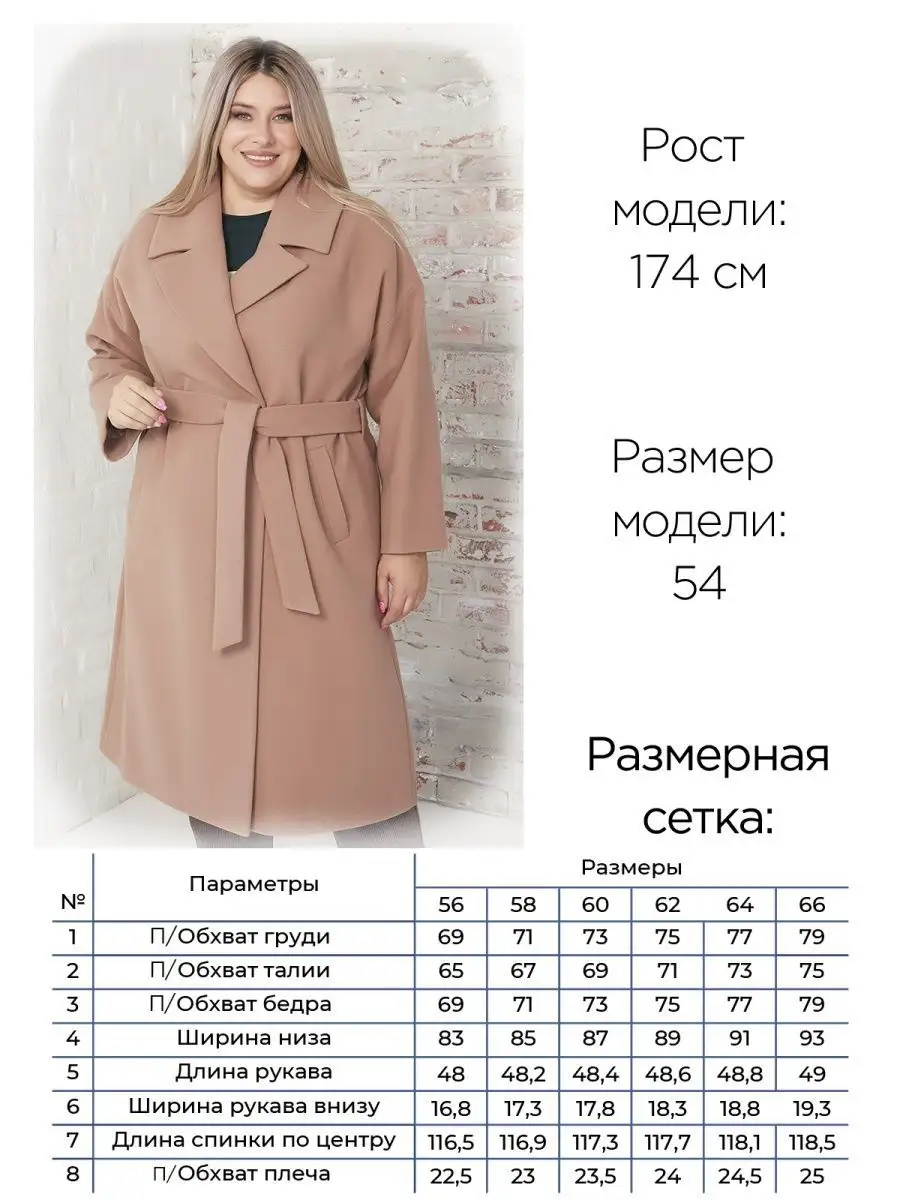 Описание: Удлиненное пальто халат с поясом это тренд 2022 - 2023 весна осень. Стильное теплое пальто женское весеннее миди из облегченной пальтовой ткани с легкостью заменить драповое пальто или кашемировое. Базовая модель прямого кроя и свободного силуэта, на подкладке для модной женщины плюс сайз. Классический плащ имеет V-образный вырез горловины оформлен английским воротником. Пальто демисезон для женщин придаёт элегантность любому образу и зрительно вытягивает фигуру. Длинное теплое пальто демисезонное выдерживают температуру от +10 до 0гр, отличный вариант для верхней одежды в прохладное межсезонье или теплую зиму. В осеннем пальто будет всегда удобно и комфортно, оно не будет сковывать движение, так как имеет уникальный свободный крой, это позволит носить двубортное женское пальто с объемным свитером, джемпером или лонгсливом. Утепленное шерстяное пальто с поясом в комплекте подойдет для девушек пышных форм, для полных женщин или как одежда для беременных на весну или осень. Лекала разработаны с учётом особенностей фигур женщин нестандартных размеров. В нашем каталоге представлена женская одежда больших размеров, одежда для девушек и женщин больших размеров, плюс сайз (plus size) на все случаи жизни в размерах от 52 до 74. Сделано в России на собственном производстве. Пальто больших размеров LUXURY PLUS представлены в нашем каталоге, перейдите, кликнув на значок бренда. УВАЖАЕМЫЕ ПОКУПАТЕЛИ! Мы проверяем товар на брак и бережно упаковываем перед отправкой на склад. Не спешите оставить негативный отзыв на платье женское больших размеров если: задержалась доставка, упаковка повреждена или перепутан товар. Просьба обращаться в службу поддержки, Вам оперативно помогут.
