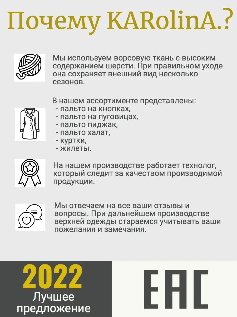 Описание: Пальто больших размеров демисезонное больших размеров - это стильное и модное решение для женщин, которые ценят комфорт и удобство. Это пальто женское короткое идеально подходит для осенней и весенней погоды, когда уже не так холодно, но еще не наступило настоящее лето. Особенности этого пальто: 1. Большой размер: наша компания понимает, что каждая женщина уникальна и заслуживает носить стильную одежду независимо от своей фигуры. Поэтому мы создали пальто демисезонное больших размеров, которое прекрасно сядет на любую пышную фигуру. 2. Стильный дизайн: пальто выполнено в черном цвете, который всегда актуален и подходит к любому образу. Оверсайз силуэт придает этой вещи особый шик и элегантность. Капюшон добавляет практичности и защищает от непогоды. 3. Качественные материалы: для изготовления этого пальто мы использовали только лучшие материалы. Верхняя ткань - драповый шерстяной материал, который приятен на ощупь и обеспечивает хорошую защиту от ветра и холода. Подкладка из искусственного шелка обеспечивает комфорт и приятное ощущение на коже. 4. Утепление: пальто утеплено синтепоном, который сохраняет тепло даже в самые холодные дни. Вы сможете чувствовать себя комфортно и уютно в любую погоду. 5. Практичность: пальто имеет два боковых кармана, в которых вы сможете удобно хранить мелочи или согреть руки. Застежка на пуговицы обеспечивает надежную фиксацию и сохранение тепла. 6. Универсальность: благодаря своему дизайну и цвету, эта одежда для полных женщин стильная легко сочетается с различными стилями и цветами. Вы сможете носить его как с повседневной одеждой, так и с более формальными нарядами. Оно подойдет и для работы, и для прогулок по городу. Пальто демисезонное больших размеров - это идеальный выбор для модных и стильных девушек и женщин, которые хотят выглядеть элегантно и привлекательно в любое время года. При покупке нашего пальто для женщин вас ожидает бонус - мы комплектуем его вешалкой. Это хит продаж! Чтобы посмотреть всю коллекцию нашего бренда, нажмите на надпись KARolinA. рядом с размерами! Пальто каролина из шерстяной ткани, стиль молодежный, классический покрой. Накидка подходит для подростка, девушка. В каталоге Вы можете найти двухсторонний спортивный стиль, женственный свободный крой, средний шов, зимний пальто рубашка, большой размер. Мы декорируем верхнюю одежду: карман, искусственный мех, натуральный мех, лен подклад, потайной кнопка, английский воротник, рукав реглан, одежда больших размеров женская прямой силуэт, женский шерстяной, женский одежда, демисезонный стеганый дизайнерский пальто, осенний. Также в нашем каталоге пальто халат, демисезонный пальто пиджак, двубортный натуральный пальто легкий оверсайз прямой крой, женский верхний, женский демисезонный, стиль оверсайз, спинка фиксироваться, шлиц средний, водоотталкивающий мягкий воротник, листочек. Мы производим изделия со следующими особенностями и материалами: трикотажный манжета, карман молния, зимний утеплять пальто. Оно идеально для повседневный носок, мы гарантируем долговечность изделие, стильный современный вид, который идеально сочетаться с замша, пояс ткань стеганый, 50 см длина, одежда женская для полных, изделие пальто с подкладкой, женский весенний осенний размер. Осенний пальто имеет длина рукав 62 см размер, 50 вискоз