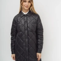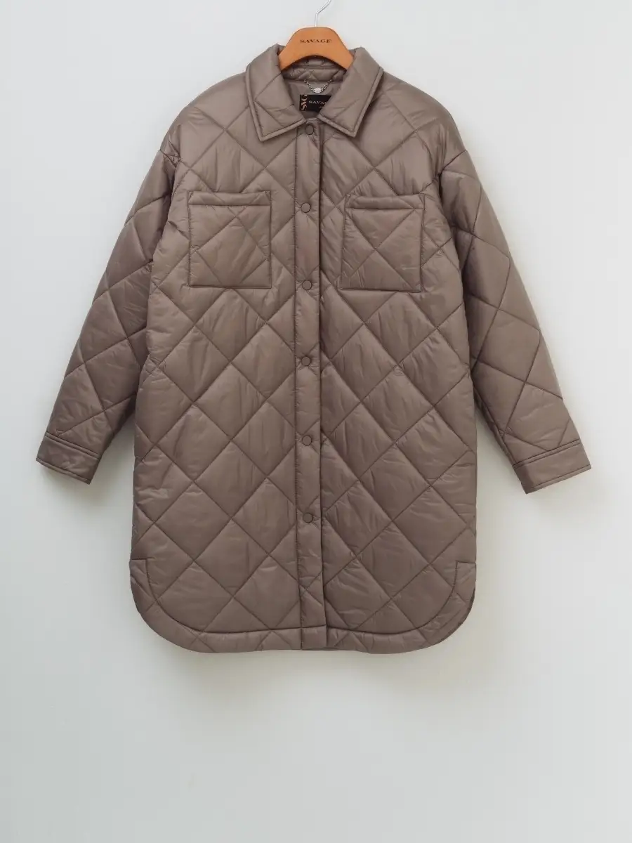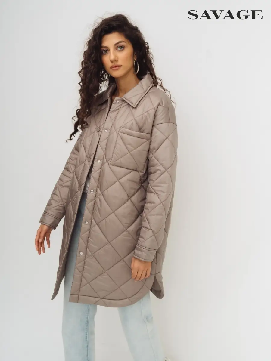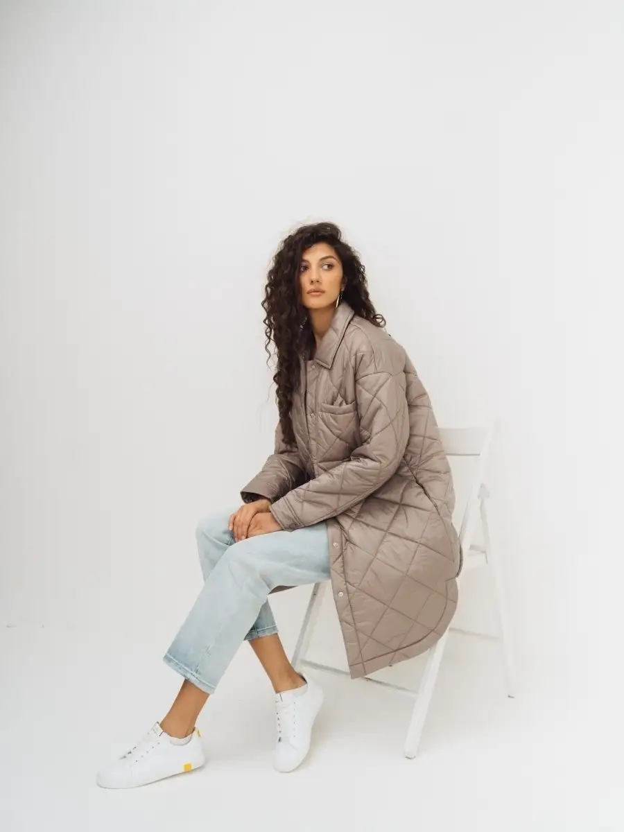 Описание: Стеганное пальто-рубашка оверсайз, на синтепоне из нейлоновой ткани. Стежка ромбами. Пальто свободного прямого силуэта, длина выше линии колен, по бокам скругленная линия низа. Застежка на кнопки в цвет ткани, отложной воротник, без капюшона. Карманы верхние накладные, нижние в боковых швах. По низу рукавов манжеты с кнопкой. Представлено в бежевом и графитовом цветах.