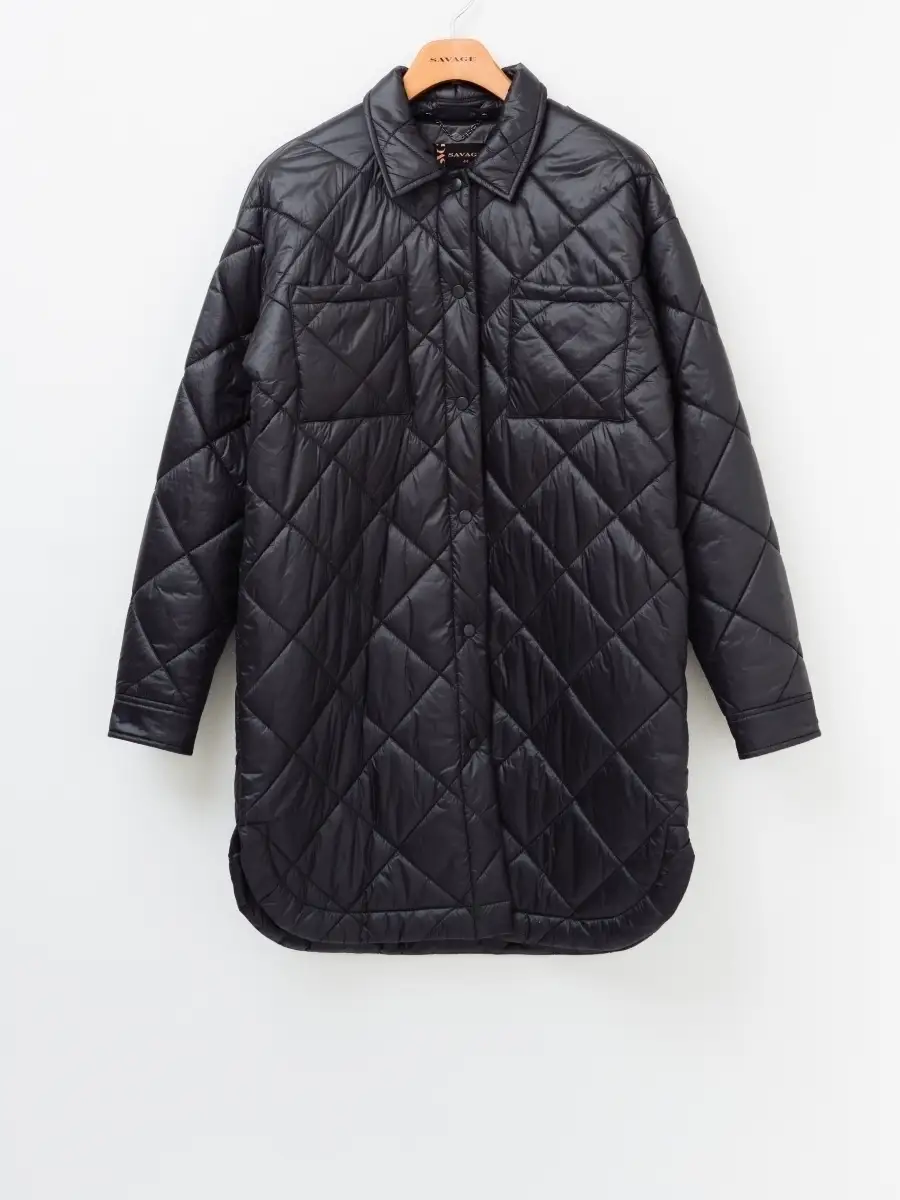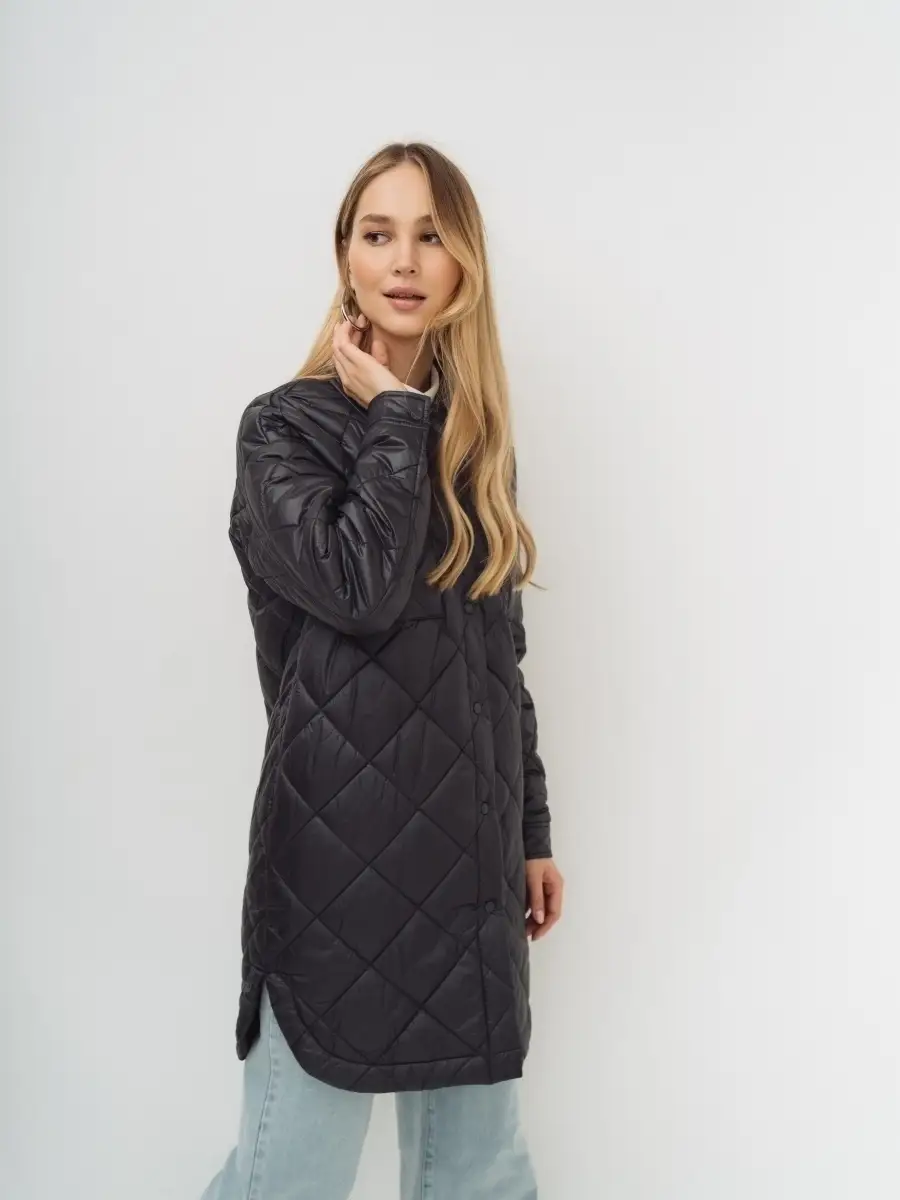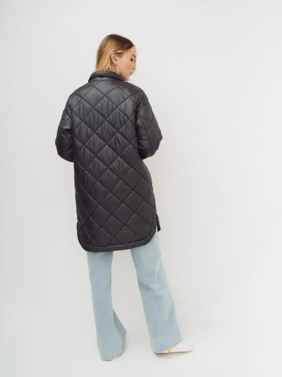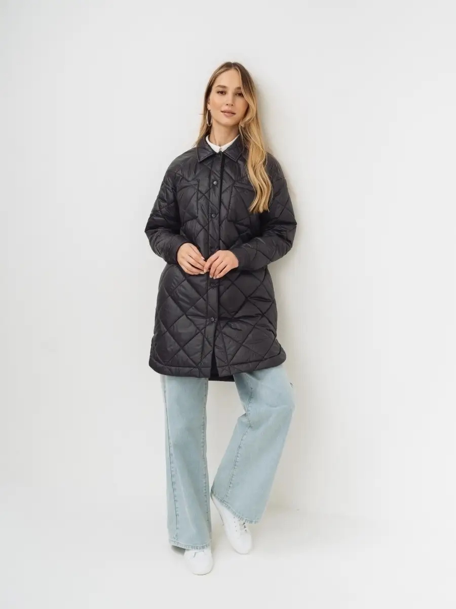 Описание: Стеганное пальто-рубашка оверсайз, на синтепоне из нейлоновой ткани. Стежка ромбами. Пальто свободного прямого силуэта, длина выше линии колен, по бокам скругленная линия низа. Застежка на кнопки в цвет ткани, отложной воротник, без капюшона. Карманы верхние накладные, нижние в боковых швах. По низу рукавов манжеты с кнопкой. Представлено в бежевом и графитовом цветах.