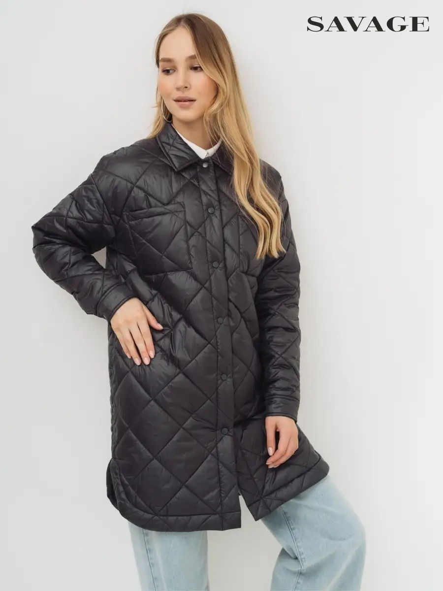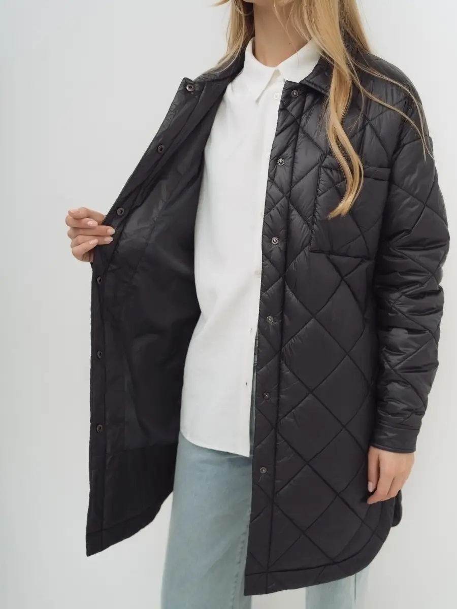 Декоративные элементы стеганая куртка женская, прошитая, oversize