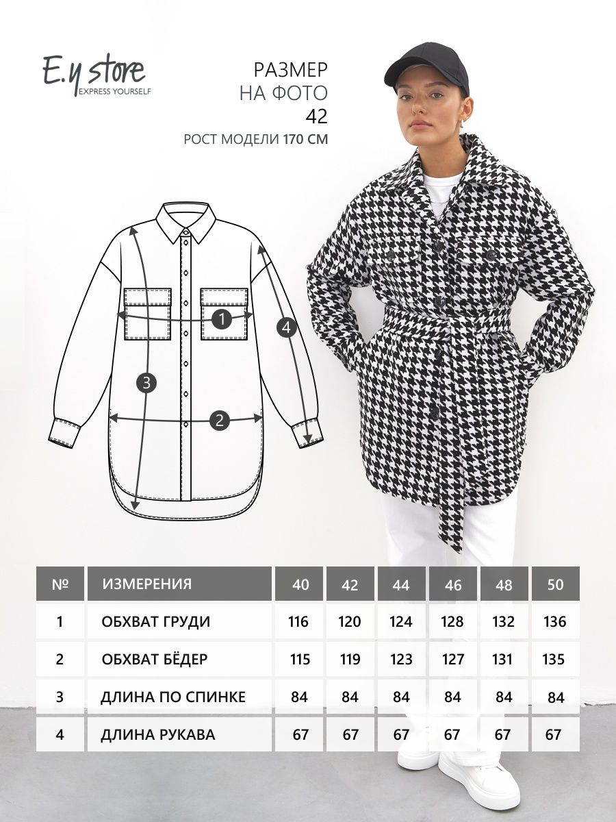 Описание: Пальто рубашка — это не только защита от холодной погоды, но и стильный и модный элемент одежды. В нашем магазине вы можете приобрести пальто на любой вкус и для любого повода. Короткое женское пальто - отличный вариант для демисезонного периода. Оно легкое и теплое, подходит как для весны, так и для осени. Накидка и полупальто - это не менее популярные варианты, которые прекрасно дополнят ваш гардероб весеннее или осеннее время года. Если вы ищете длинное пальто, то у нас есть отличные варианты: от бежевого и коричневого, до модного черного и кофейного. Оверсайз пальто с гусиной лапкой, однотонное или с принтом елочки. Также в нашем ассортименте есть теплое и легкое весеннее кашемировое пальто, серое весна-осень оверсайз драповое пальто, шерстяное белое пальто и многое другое. Пальто могут быть приталенными или двубортными, классическими или для повседневной носки. Они подойдут для девушек, женщин и девочек, для офиса, прогулки, школы или университета. Доступны различные виды пальто: полу-пальто, стеганное, оверсайз, длинное, короткое, миди, укороченное, легкое, тренч, тренчкот, прямого кроя, прямое, кокон и тедди. Модели с V-образным вырезом, на запах, с воротником-лацканом, английским воротником, на запах. Все наши пальто выполнены из премиум качественной ткани, имеют современный английский воротник, подкладку в тон ткани, зауженный силуэт и спущенный рукав. Некоторые модели также промокаемые и влагоустойчивые. Есть нарядные, вечерние, классические и строгие модели. Для подростков доступны пальто-рубашки и пиджаки. Для беременных - пальто на запах с удобным кроем. Для всех моделей доступны различные размеры, в том числе большие размеры. Пальто износостойкие, удобные, практичные, теплые и утепленные. Модные и стильные, с подкладкой в тон ткани. Подходят для высоких, невысоких и низких людей. Все пальто отлично защищают от влаги и не промокают. Представлены модели как на весну, так и на зиму.