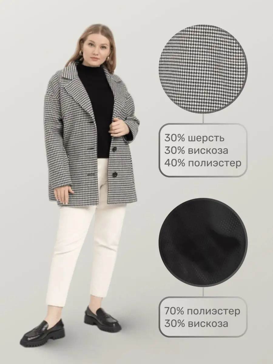 Пальто женское шерстяное короткое жакет оверсайз полупальто