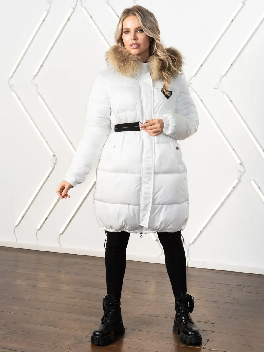 Описание: Пальто женское зимнее с капюшоном и мехом FADJO. Пальто поставляется с поясом-резинкой. Замеры для размера 44:плечи-44 см, длина рукава по внешнему шву-60 см, по внутреннему-47 см, обхват низ-104 см, длина изделия по спинке-90 см .Рост девушки на фото 170 см, размер 44, размер изделия 44. Рекомендуемый температурный режим изделия от +5 до -7 градусов (для каждого клиента температурный режим отличается, в связи с индивидуальным восприятием погодных температур).