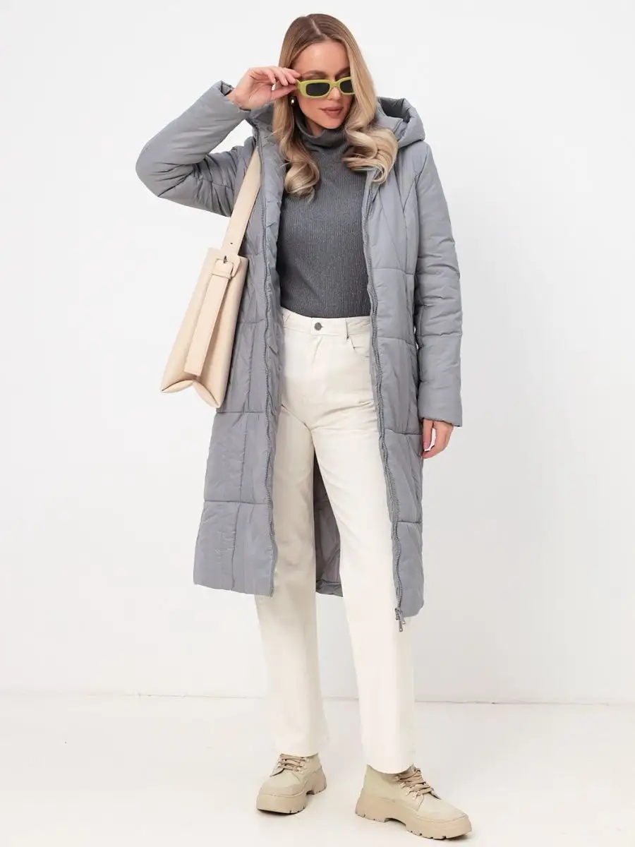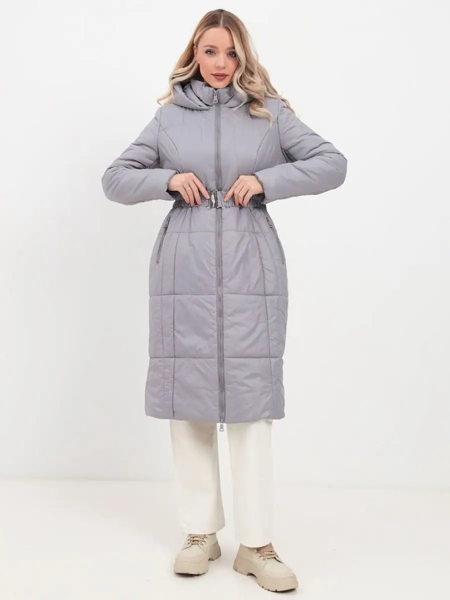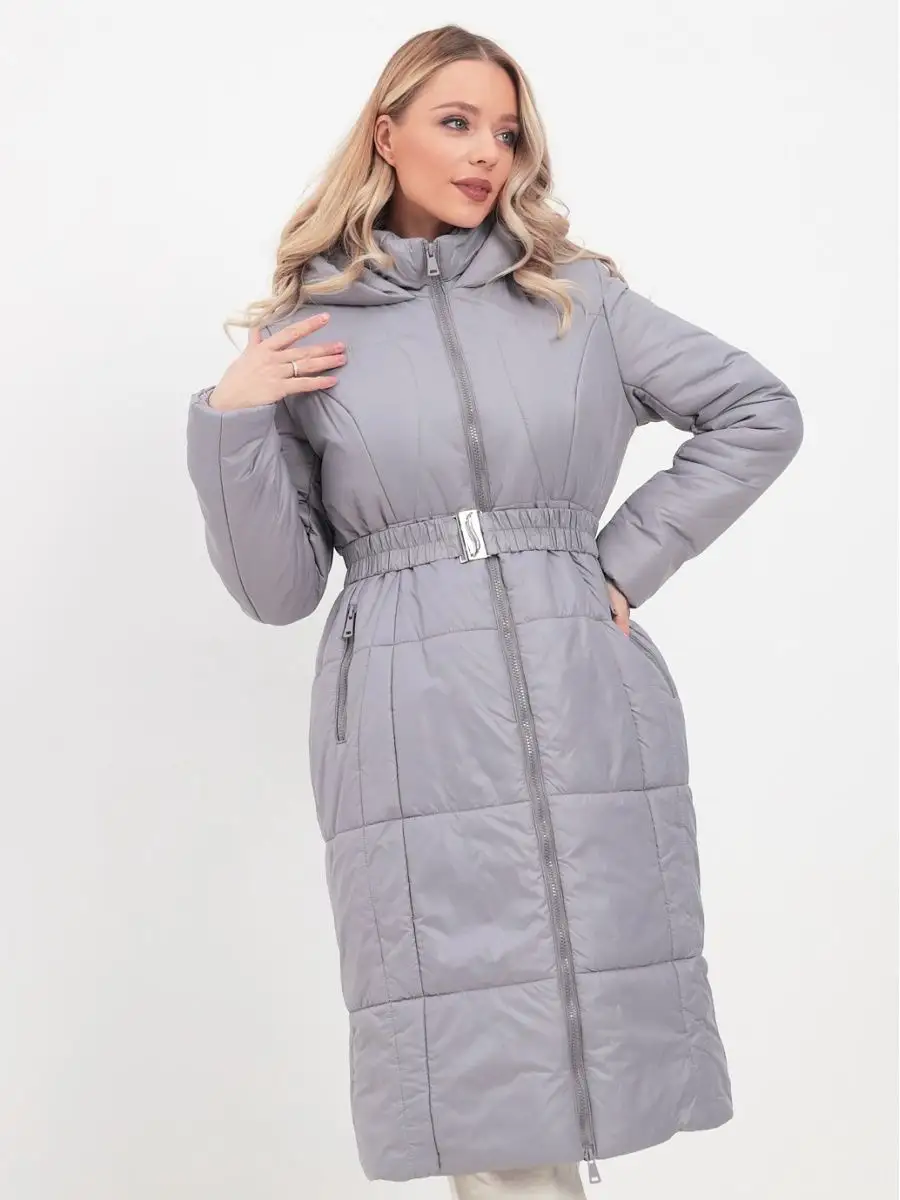 Описание: Зимнее женское пальто с эластичным поясом с металлической пряжкой. Пальто БОЛЬШЕМЕРИТ на один размер! Стеганая демисезонная куртка на молнии, с несъемным капюшоном и высокой стойкой, прорезными карманами листочками. Приталенный базовый силуэт и дизайнерская фигурная стежка помогают скрыть недостатки и выгодно смотрятся на фигуре plus-size (плюс сайз). Фирменные молнии в тон и отсутствие декоративных элементов делают модель лаконичной, а образ завершенным. Универсальный и теплый зимний пуховик для женщин защитит вас от ветров и морозов благодаря ветрозащитной ткани и влагонепроницаемой пропитке. В утепленной модели применен синтепон 300 г/кв.м. Наполнитель идет цельным полотном, за счет этого не оседает книзу, как кусковой. Изделие можно стирать в автоматической машинке в режиме бережной стирки. Высококачественная подкладочная ткань пальто обеспечивает удобство надевания и долговечность. Пальто зимнее больших размеров для холодной осенней, ранней весенней и зимней погоды с температурой от -20 до +5 градусов. Указанная температура комфорта может зависеть от индивидуальной восприимчивости к холоду. Удлиненная куртка пуховик станет отличным решением для будущих мам. Свободная спортивная курточка - лучший выбор для активного отдыха и туризма, бега, прогулок, так как не ограничивает движений. Прекрасно подходит для подростков, девочек, девушек и женщин с ростом 160-170см, под любую комплекцию, а также органична для беременных. С пуховиком можно носить шерстяные толстовки, худи и толстые кофты. Мы будем признательны, если Вы оставите отзыв о нашей верхней одежде! Благодаря Вам мы становимся лучше!