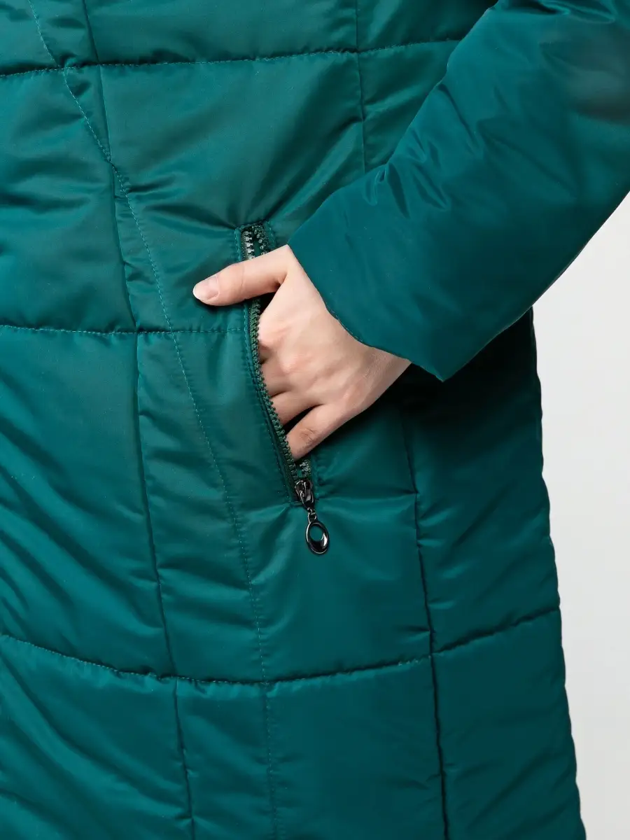 Описание: Зимнее женское пальто с эластичным поясом с металлической пряжкой. Пальто БОЛЬШЕМЕРИТ на один размер! Стеганая демисезонная куртка на молнии, с несъемным капюшоном и высокой стойкой, прорезными карманами листочками. Приталенный базовый силуэт и дизайнерская фигурная стежка помогают скрыть недостатки и выгодно смотрятся на фигуре plus-size (плюс сайз). Фирменные молнии в тон и отсутствие декоративных элементов делают модель лаконичной, а образ завершенным. Универсальный и теплый зимний пуховик для женщин защитит вас от ветров и морозов благодаря ветрозащитной ткани и влагонепроницаемой пропитке. В утепленной модели применен синтепон 300 г/кв.м. Наполнитель идет цельным полотном, за счет этого не оседает книзу, как кусковой. Изделие можно стирать в автоматической машинке в режиме бережной стирки. Высококачественная подкладочная ткань пальто обеспечивает удобство надевания и долговечность. Пальто зимнее больших размеров для холодной осенней, ранней весенней и зимней погоды с температурой от -20 до +5 градусов. Указанная температура комфорта может зависеть от индивидуальной восприимчивости к холоду. Удлиненная куртка пуховик станет отличным решением для будущих мам. Свободная спортивная курточка - лучший выбор для активного отдыха и туризма, бега, прогулок, так как не ограничивает движений. Прекрасно подходит для подростков, девочек, девушек и женщин с ростом 160-170см, под любую комплекцию, а также органична для беременных. С пуховиком можно носить шерстяные толстовки, худи и толстые кофты. Мы будем признательны, если Вы оставите отзыв о нашей верхней одежде! Благодаря Вам мы становимся лучше!