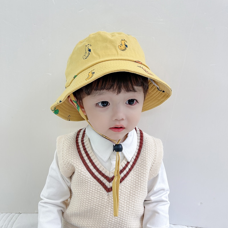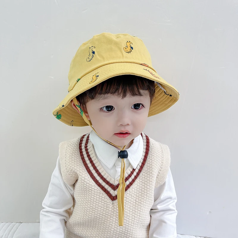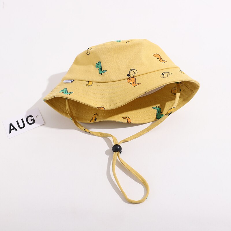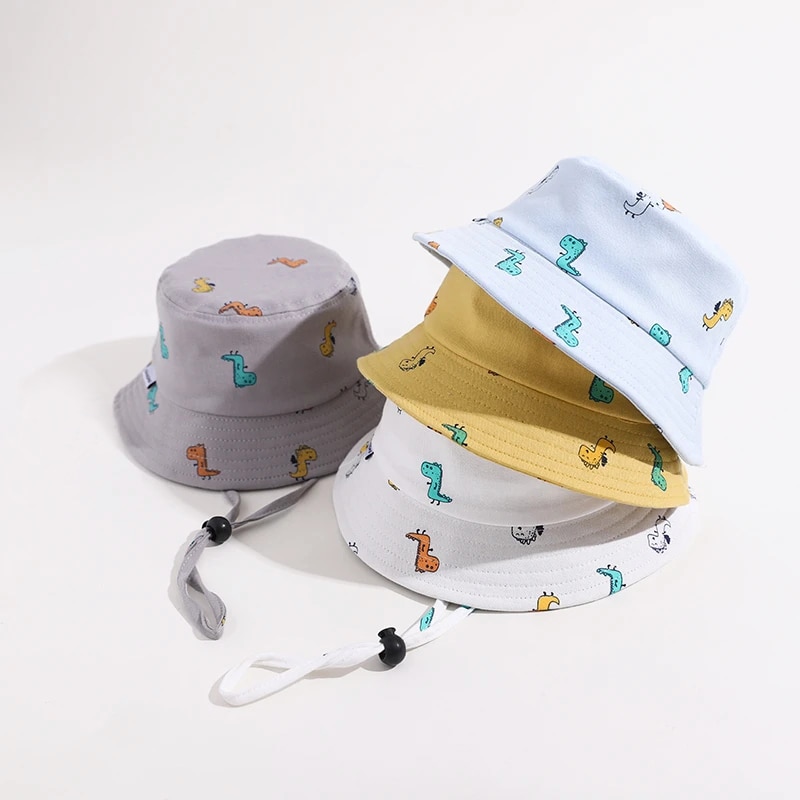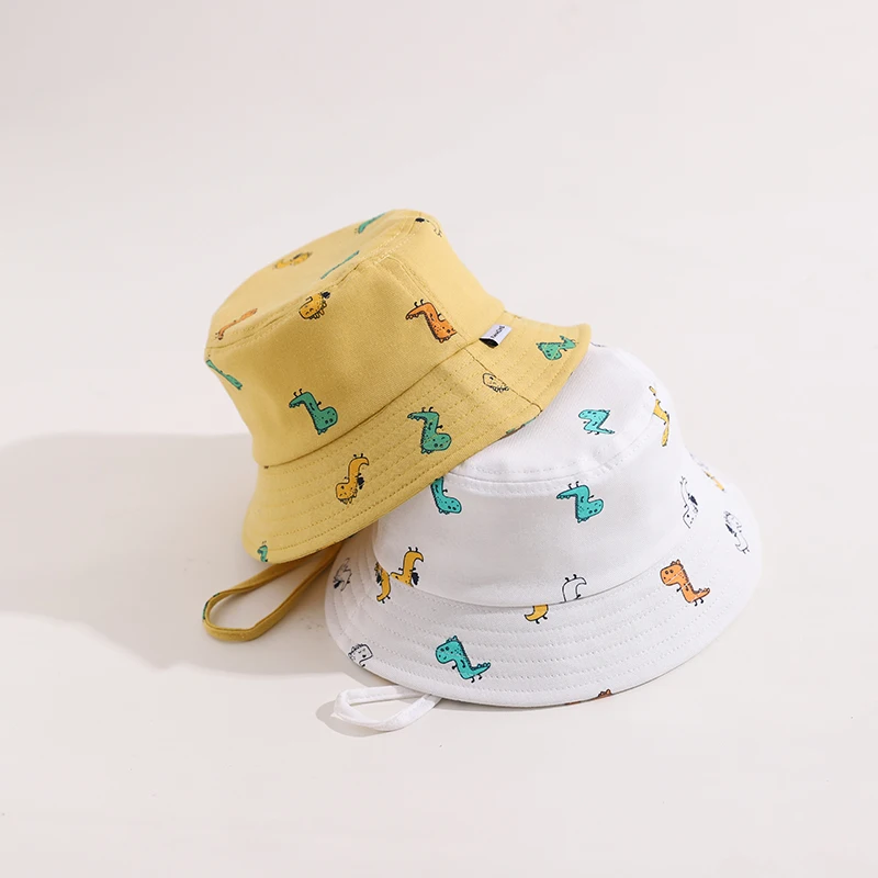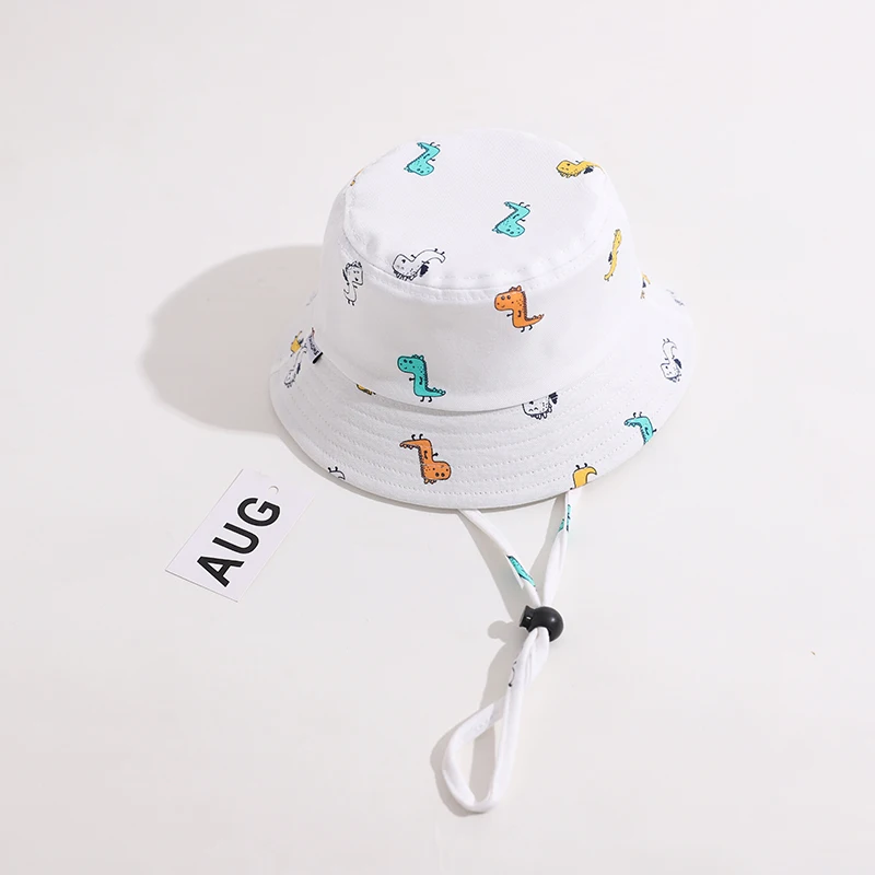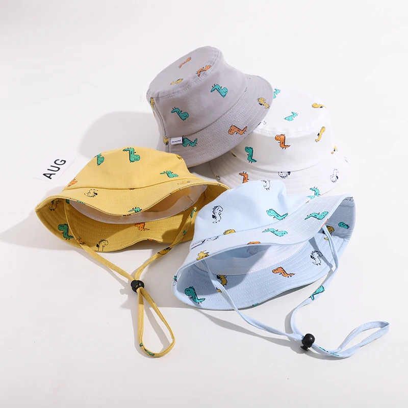 Панама детская с мультяшным динозавром, хлопковая шляпа для рыбалки, с защитой от ветра, летняя