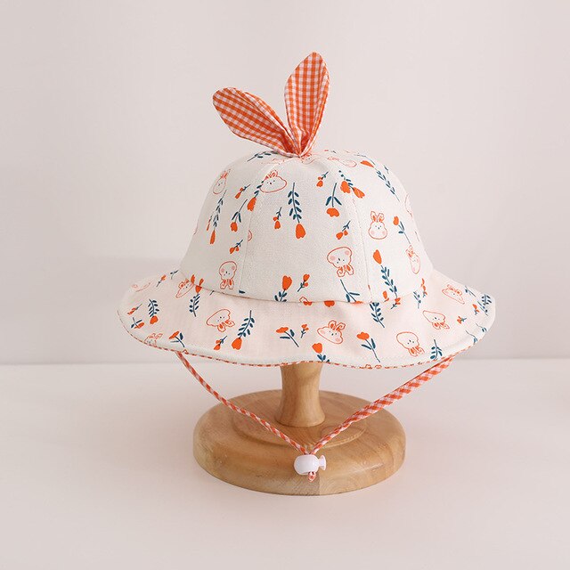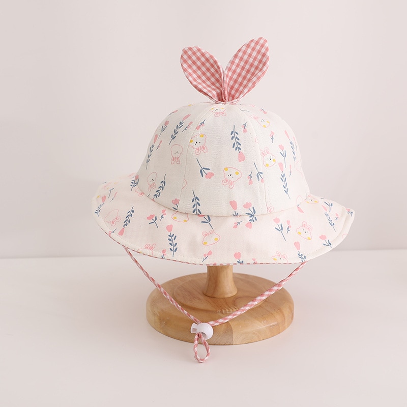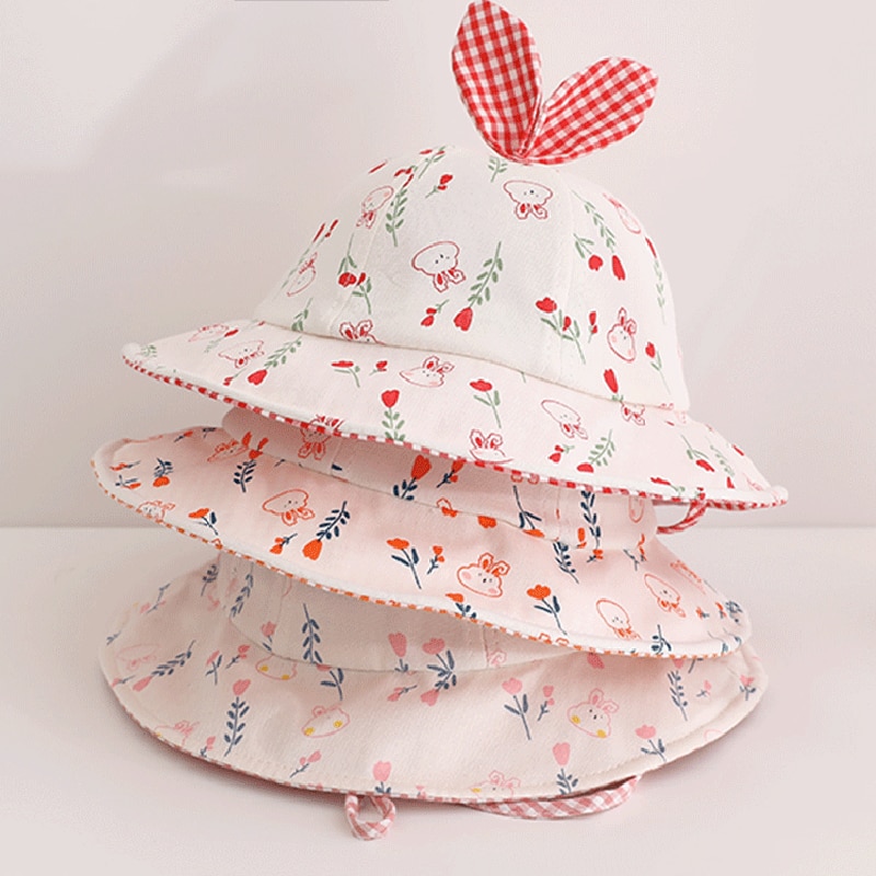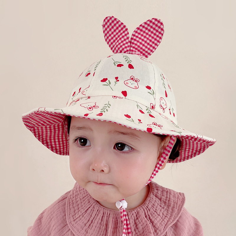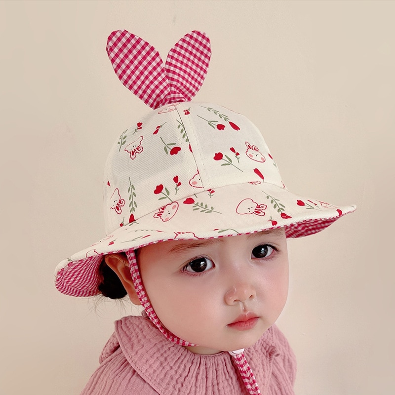 Панама для маленьких девочек, кепка в виде мультяшного кролика с фруктами для девочек, весенне-летняя Солнцезащитная шляпа, ветрозащитный галстук для детей