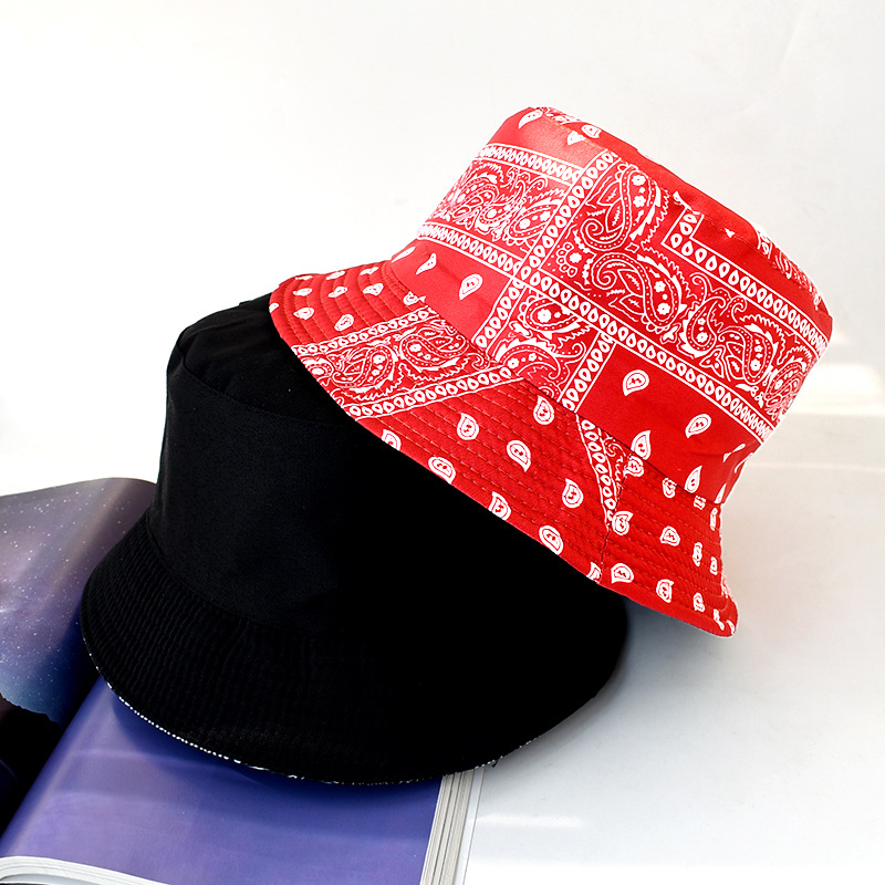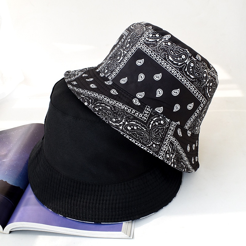New Summer Cotton Bucket Hat Men Women Cashew Flowers Double-Sided Sun Cap Summer Panama Unisex Fold Sun Fishing Fisherman Hats