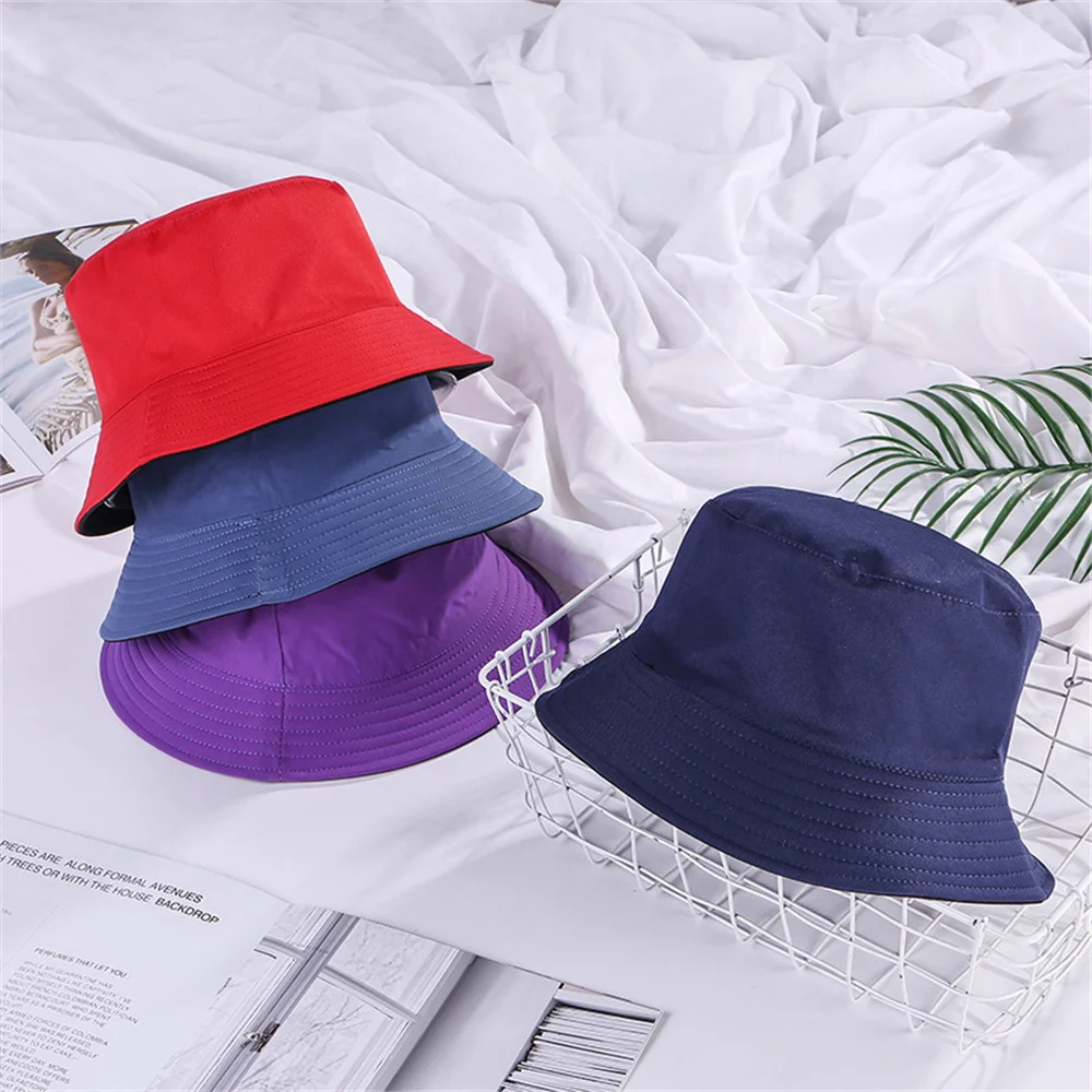 Панама хлопковая Складная двусторонняя для мужчин и женщин, шляпа от солнца, однотонная, летняя
