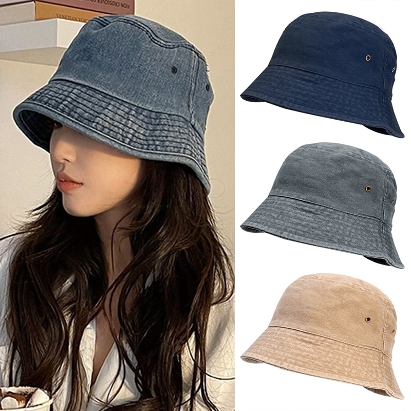 Панама из денима с эффектом потертости, винтажная рыбака, ковбойская шляпа от солнца в стиле унисекс, модная шапка в стиле хип-хоп, с козырьком, лето