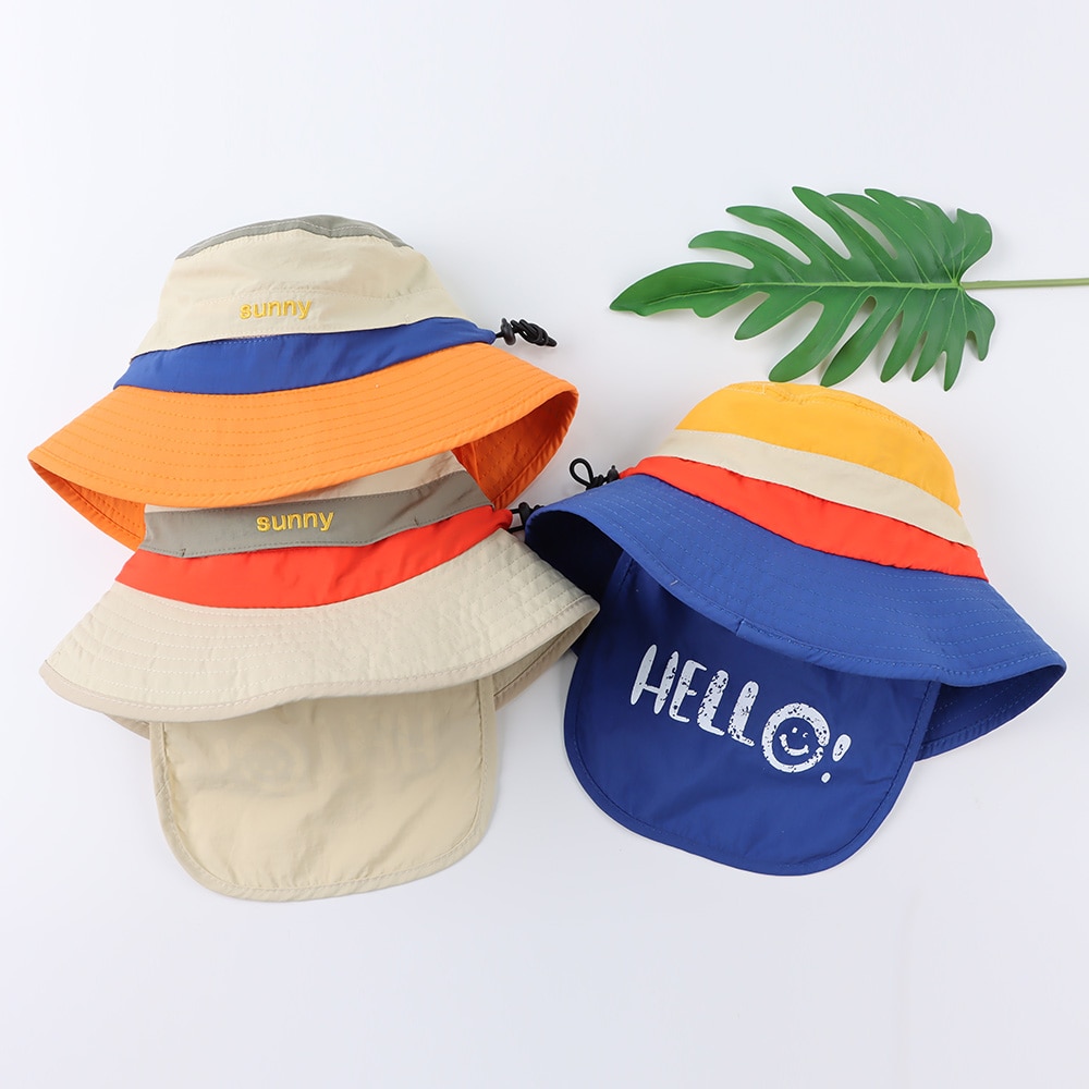 Панама летняя с широкими полями для девочек и мальчиков, детская пляжная шапка с мультяшным рисунком, с застежкой на шею, Кепка От Солнца