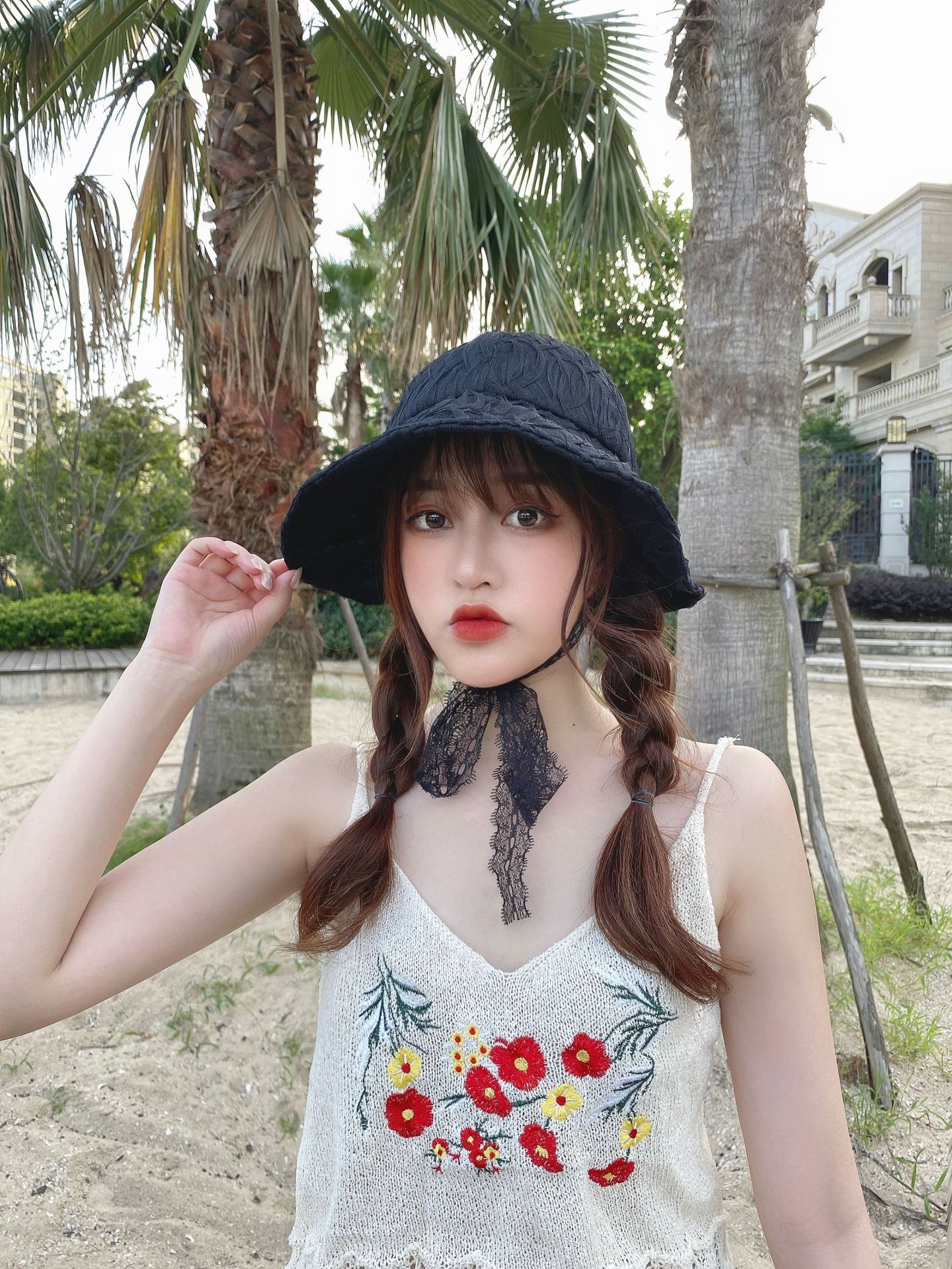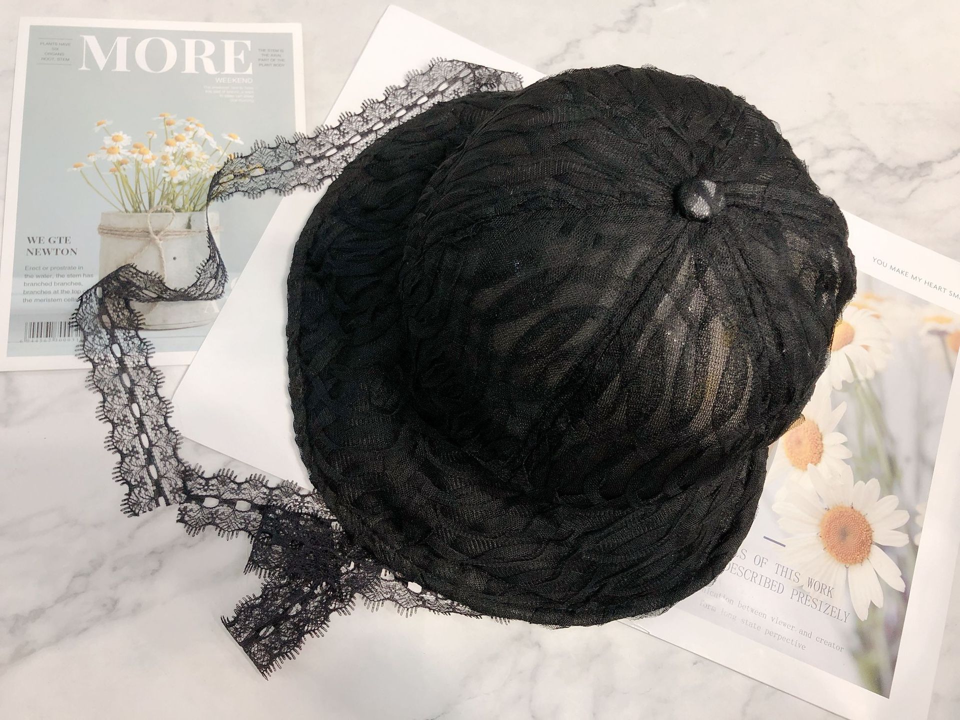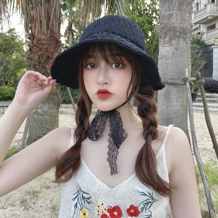 Панама с цветочным рисунком и лентой женская, кружевная шляпа с широкими полями в стиле ретро, черный козырек, модная летняя кепка от солнца в рыбацком стиле, в Стиле Лолита