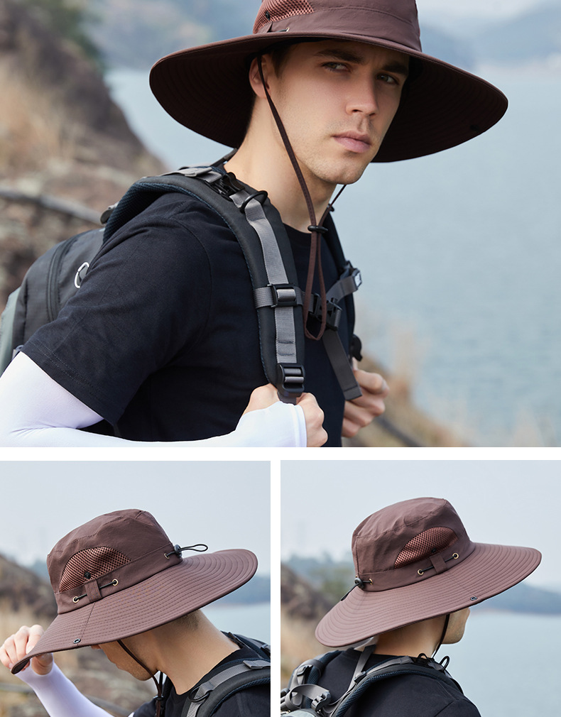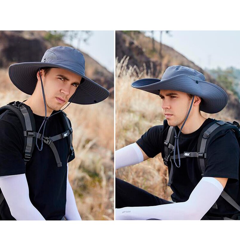 Панама с широкими полями для активного отдыха, модная шляпа от солнца, с кулиской, для альпинизма, рыбалки, велокозырек, дышащая сетка, летняя
