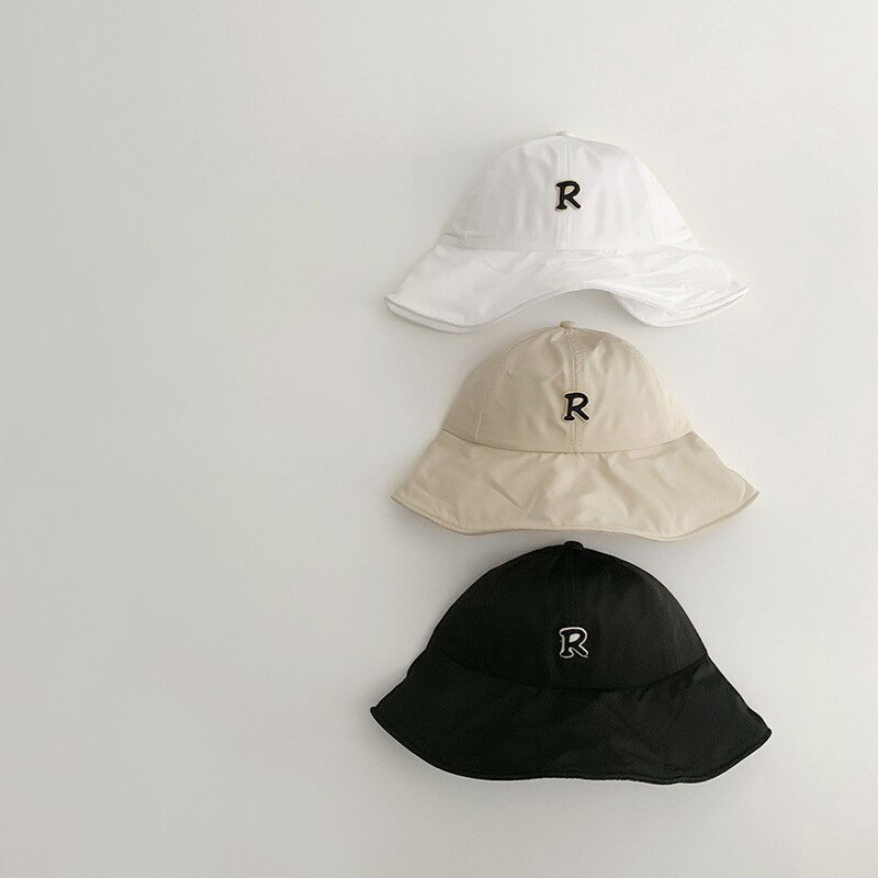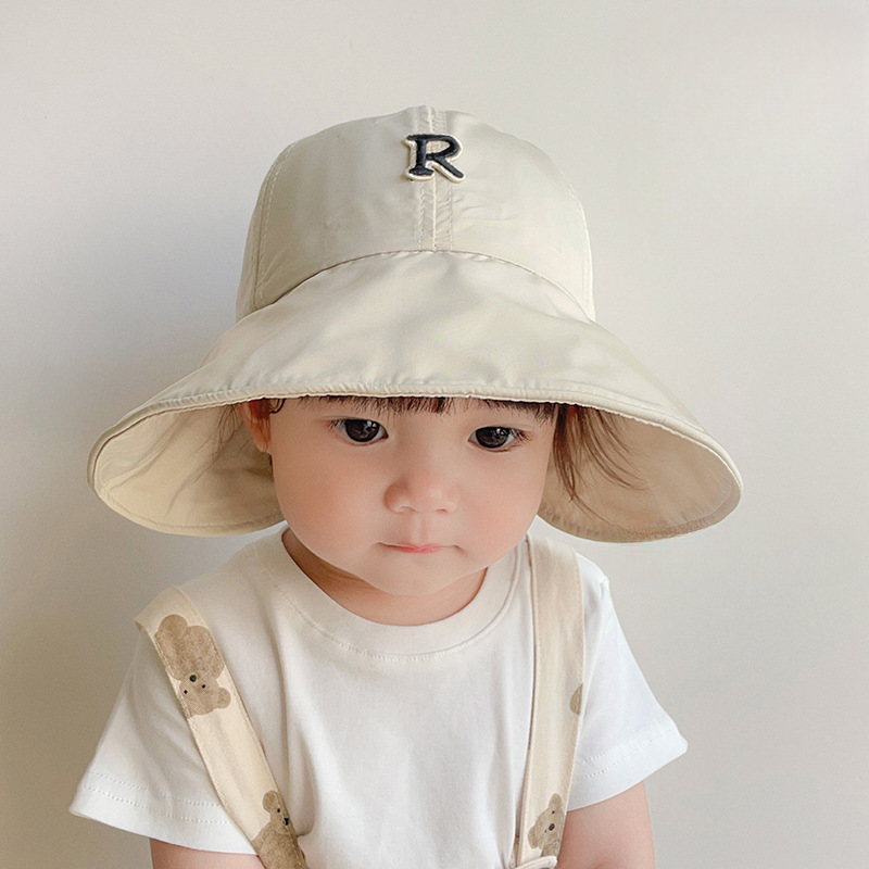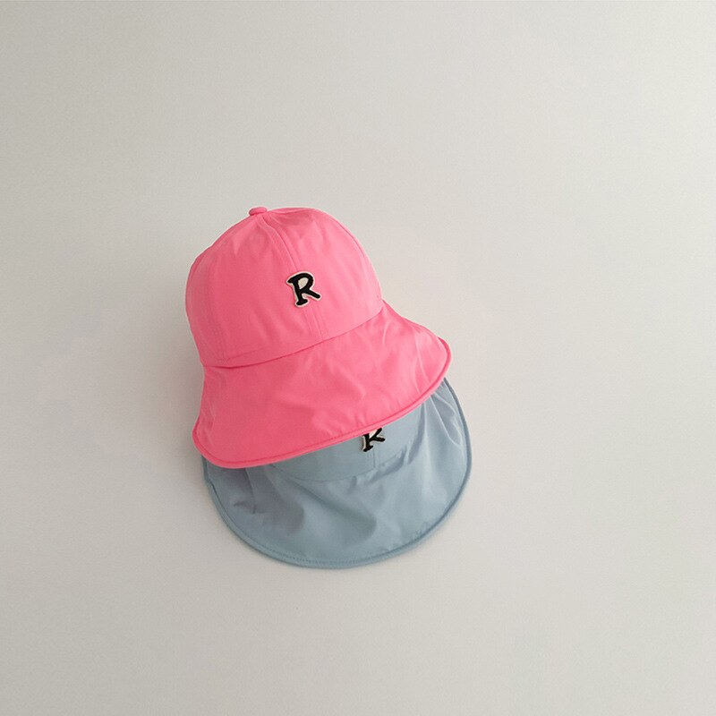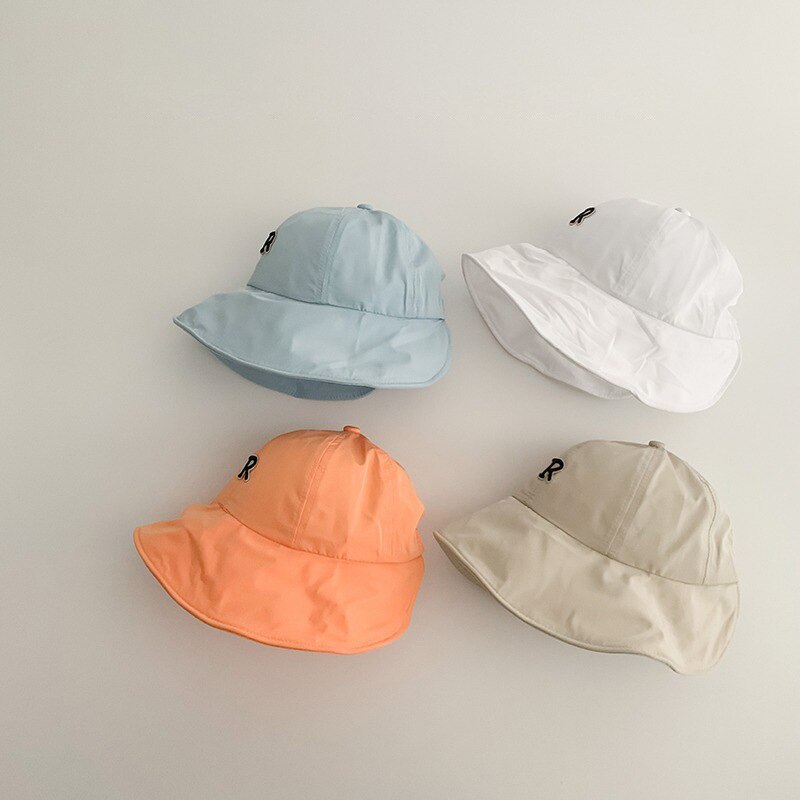 Детская шляпа от солнца с большими полями, летняя шляпа с защитой от ультрафиолета для детей, шляпа-ведро с буквой R, уличные дорожные детские пляжные шапки