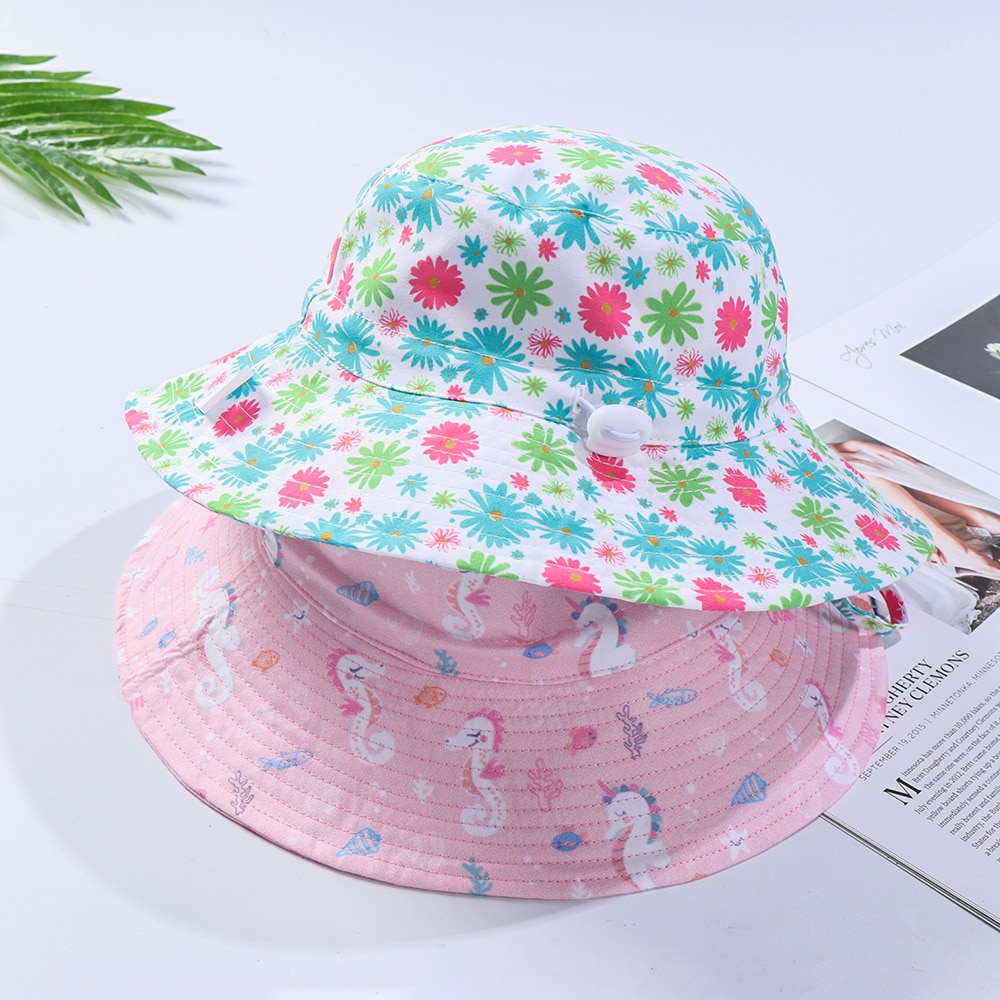 Панама с широкими полями для девочек 0-8 лет, шапка от солнца с регулируемым ремешком для подбородка, для плавания, защита от ультрафиолета