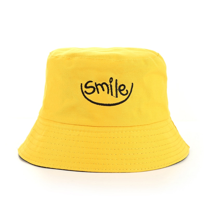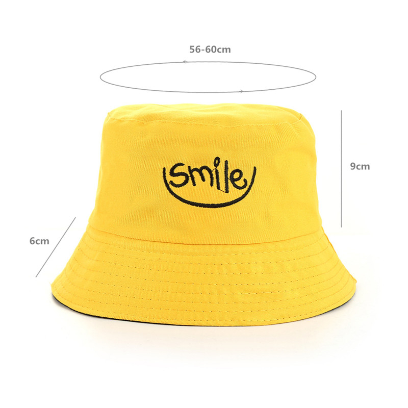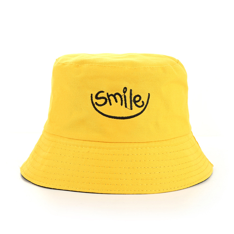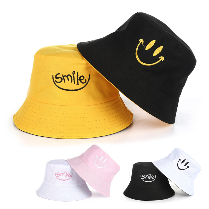 Панама с вышивкой в стиле унисекс, хлопковая двухсторонняя простая шапка в стиле хип-хоп, модная пляжная шляпа от солнца для рыбалки, с улыбающимся принтом, лето