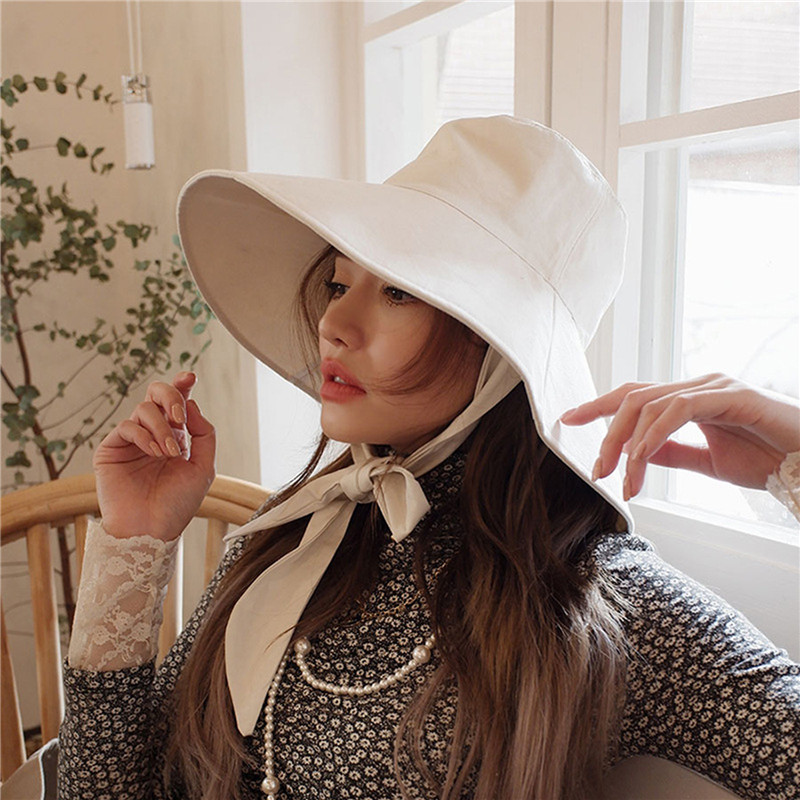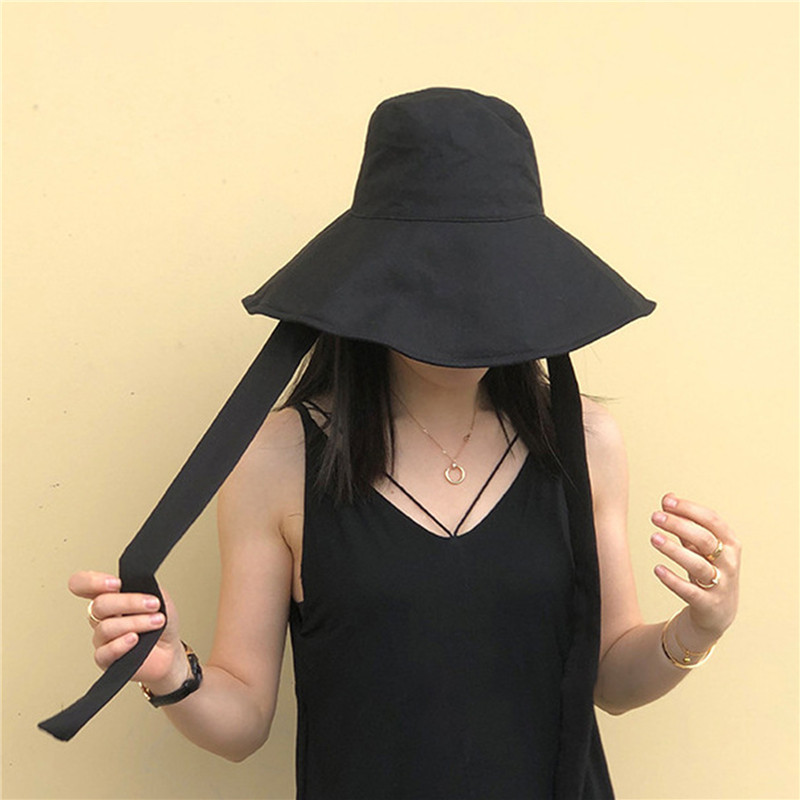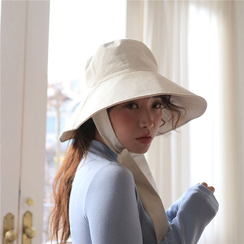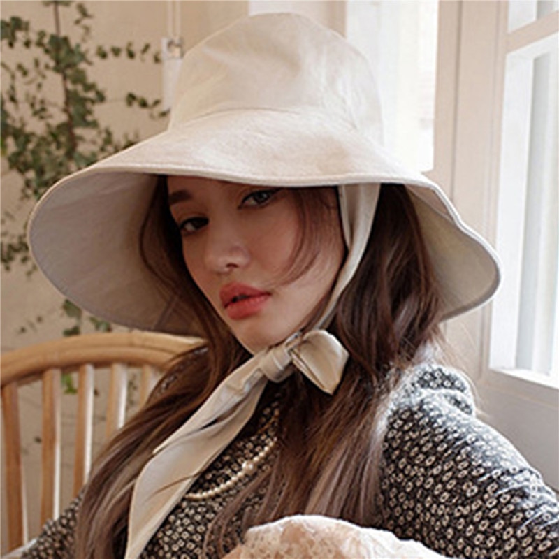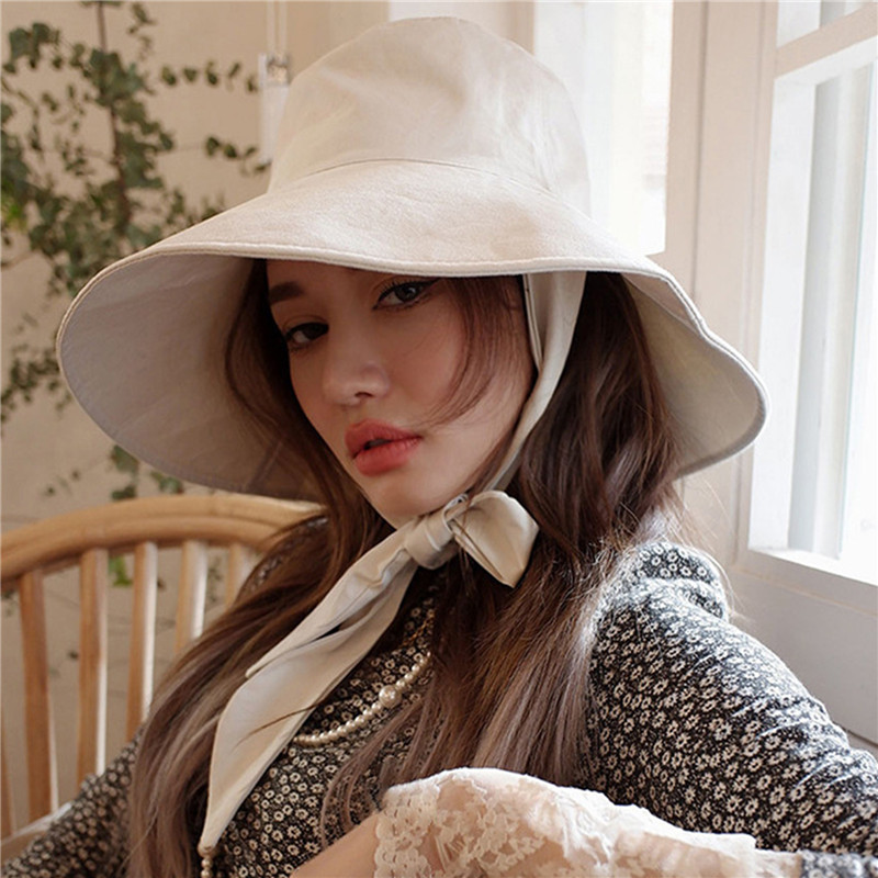 Панама с завязкой женская, складная пляжная Панама от солнца из хлопка и льна, с большими полями, в Корейском стиле, в японском стиле, весна-лето