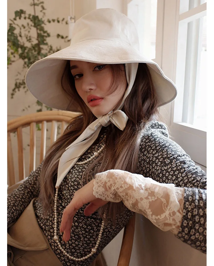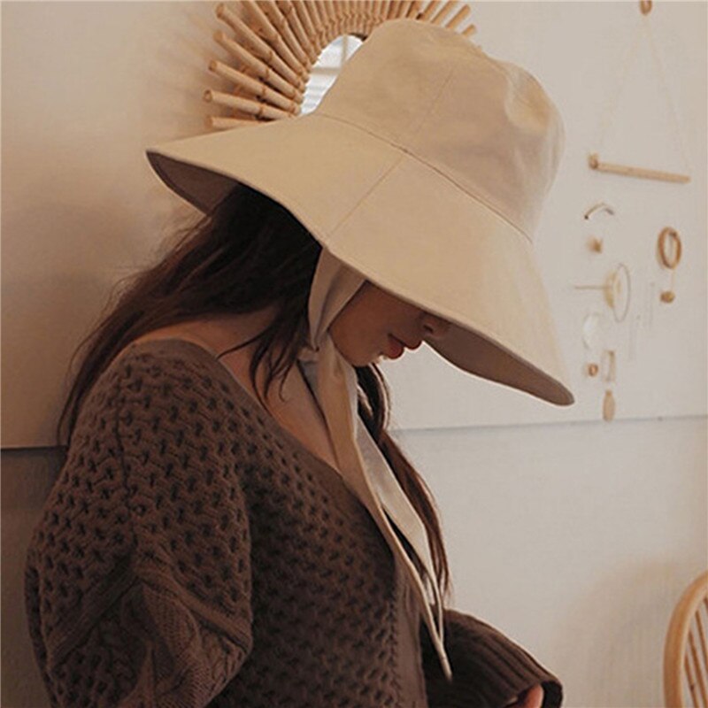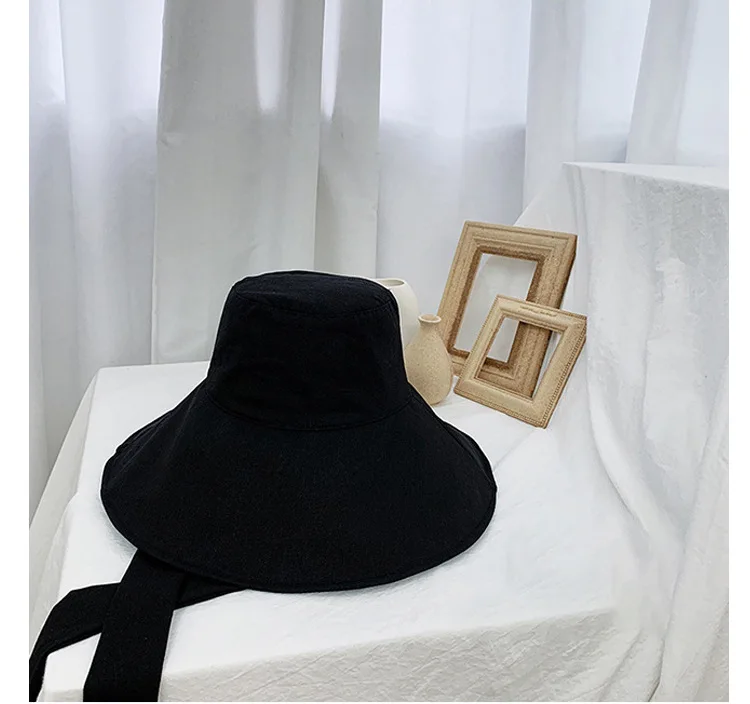 Панама с завязкой женская, складная пляжная Панама от солнца из хлопка и льна, с большими полями, в Корейском стиле, в японском стиле, весна-лето