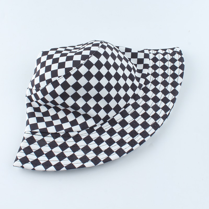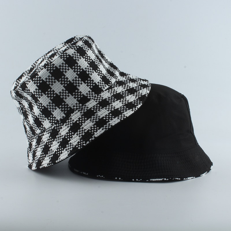 Панама в шотландскую клетку для мужчин и женщин, двусторонняя шляпа, чёрная, белая, 2023