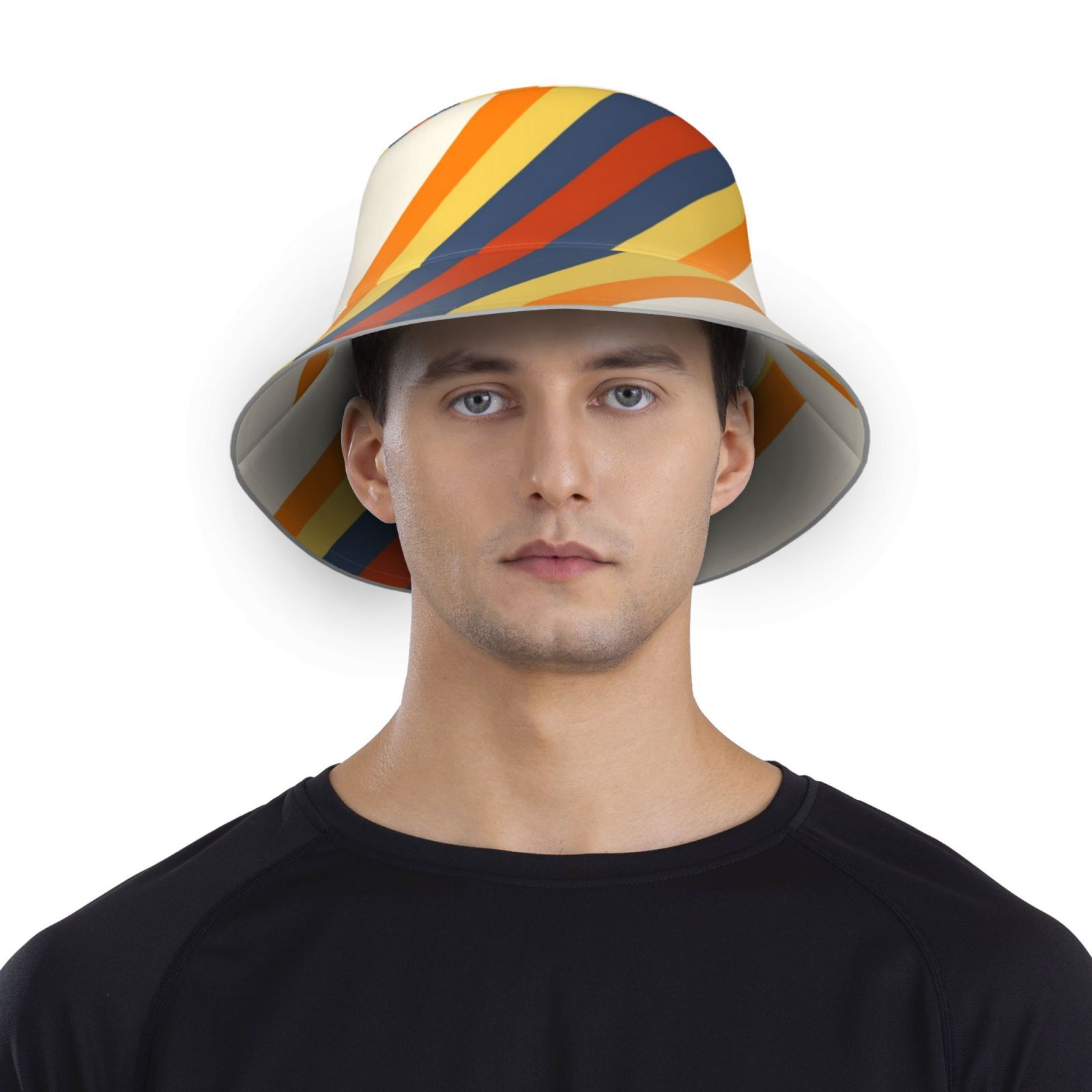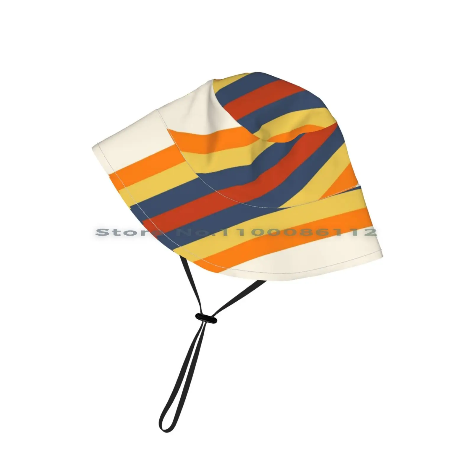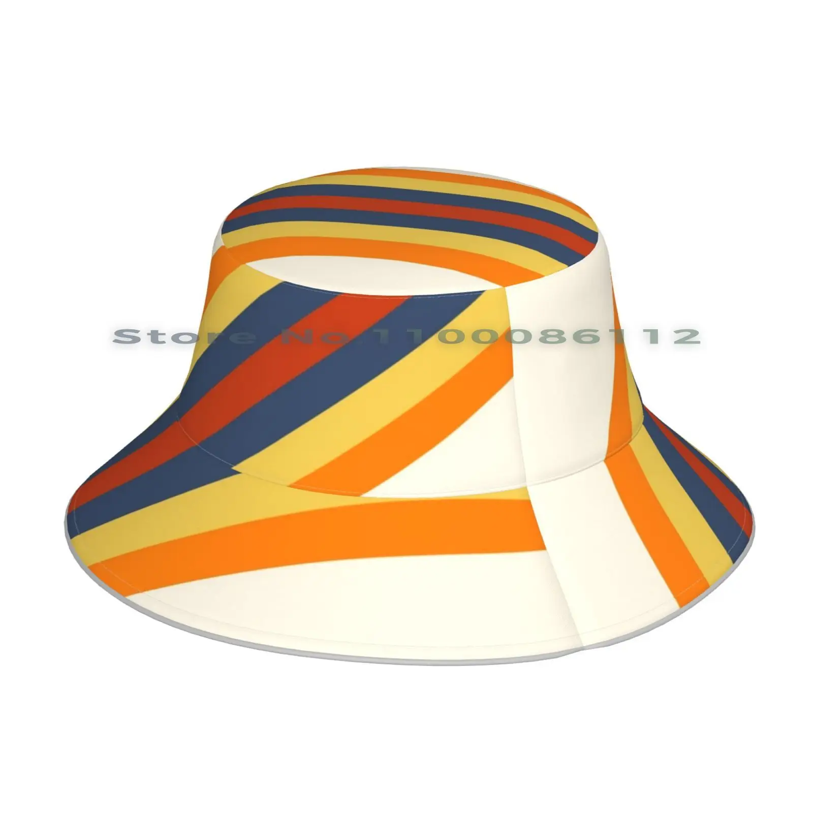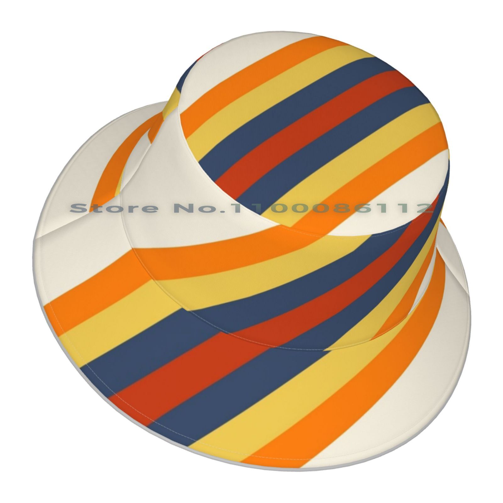 Панама в стиле ретро с полосками, винтажная шляпа от солнца, в желтую, синюю, оранжевую полоску, полоску, полосатая, крутая в современном стиле, 70s, 80s, 90s