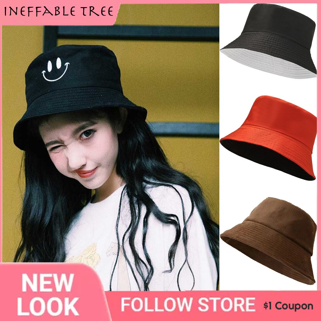 Унисекс шляпа ведро смайлик вышивка женская хлопок двухсторонняя простая Вельветовая Боб хип-хоп шляпа четыре сезона Панама пляжная Рыбалка солнцезащитная Кепка