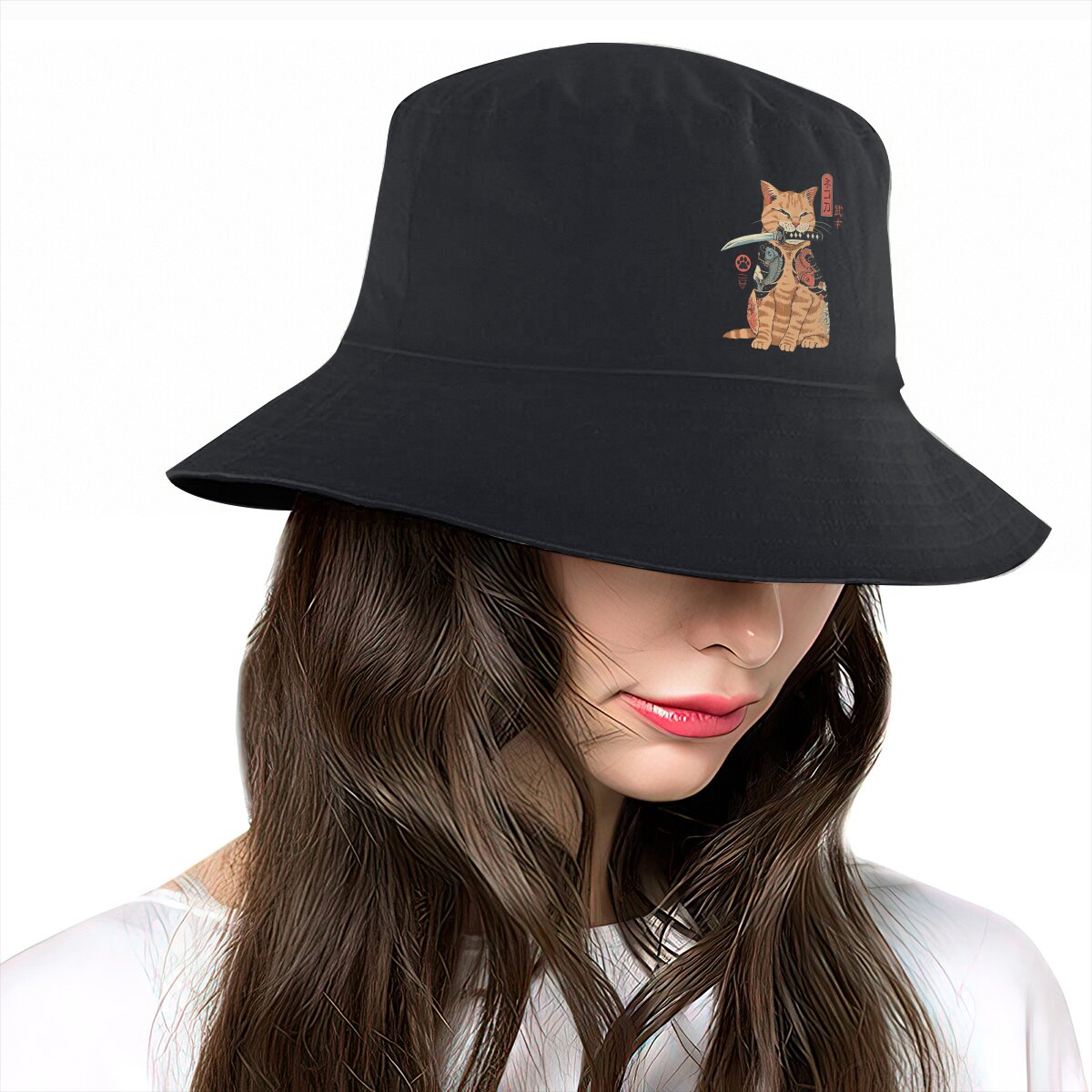 Панама в стиле унисекс, винтажная шапка от солнца в стиле хип-хоп, с котом и Samuri, модный дизайн