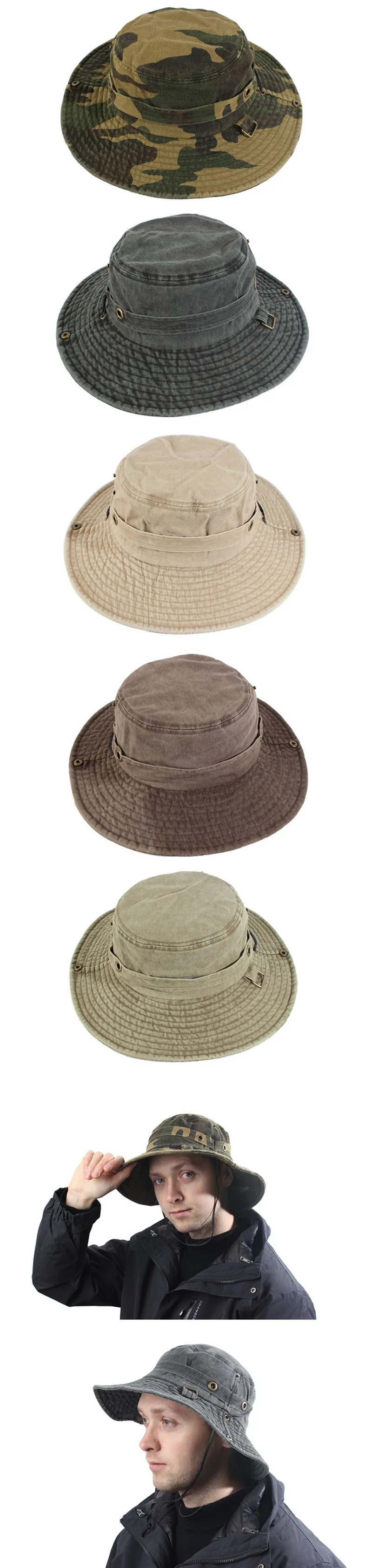 Панама XdanqinX мужская хлопковая, камуфляжная дорожная Повседневная пляжная шляпа с эффектом потертости, ветрозащитная веревка, фиксированные джунгли, летняя