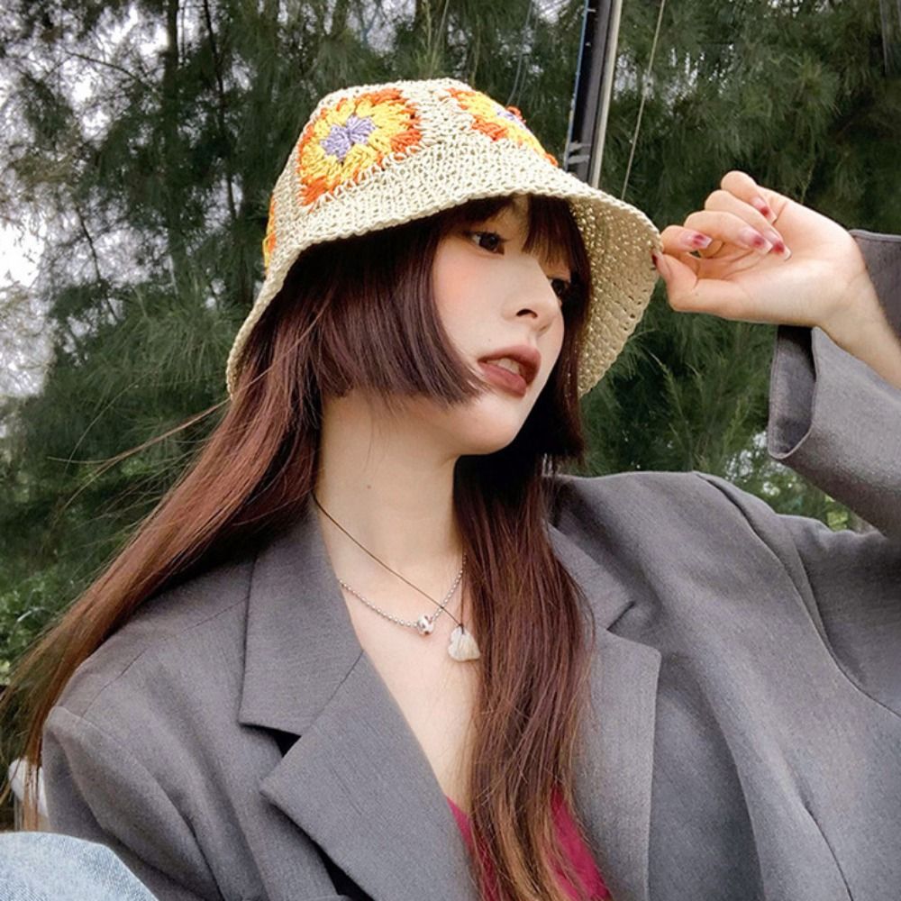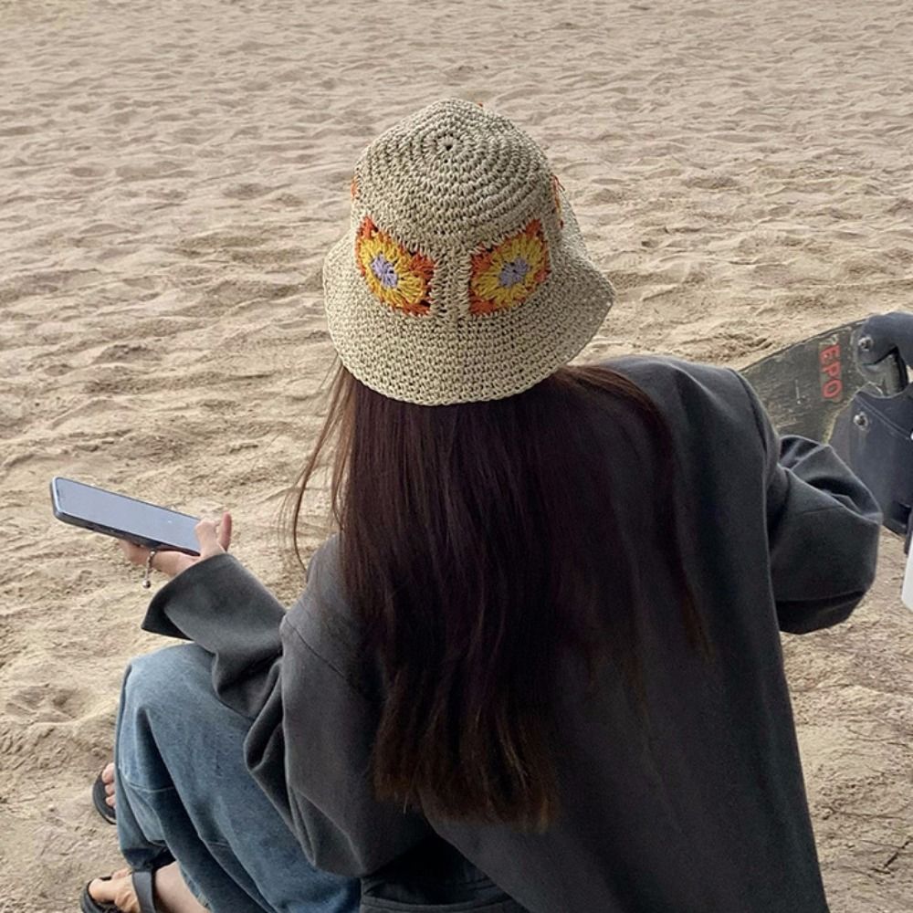 Панама японская летняя из дышащего материала с цветами, Соломенная пляжная Панама от солнца, ручной работы, шляпа для рыбалки
