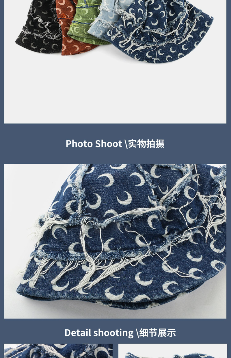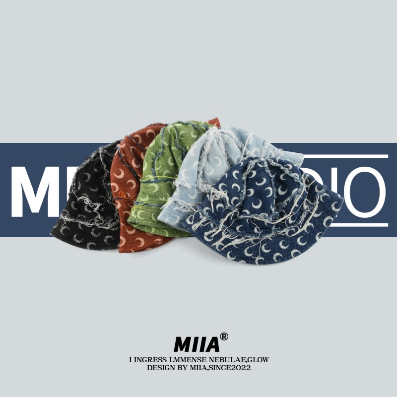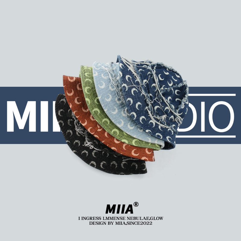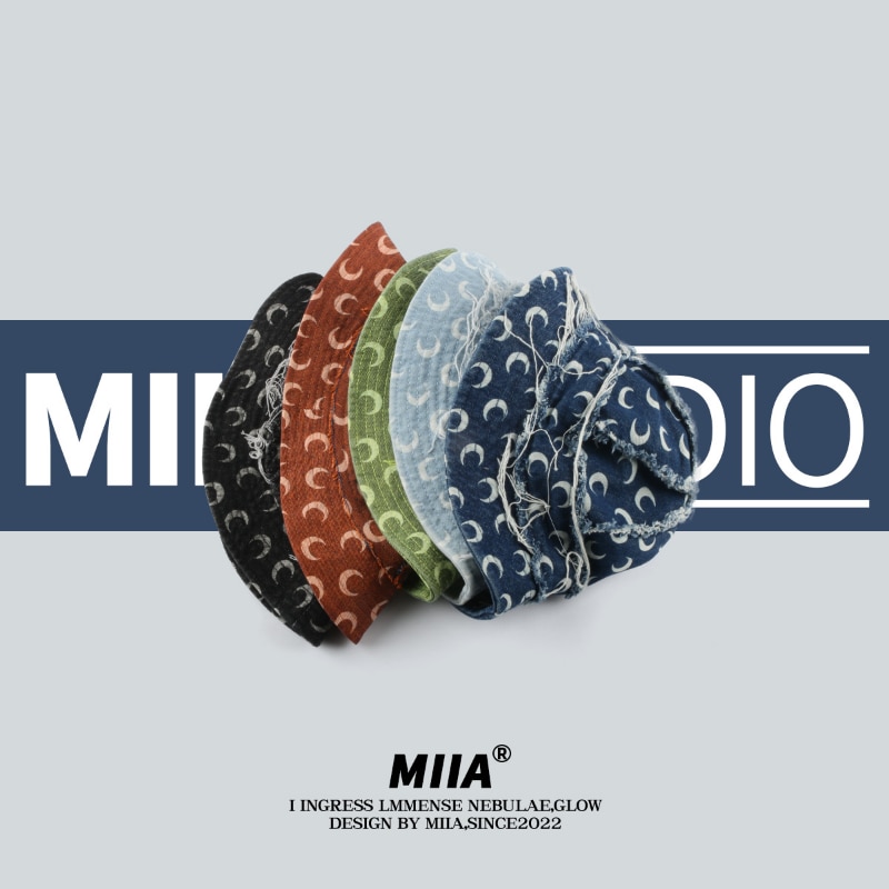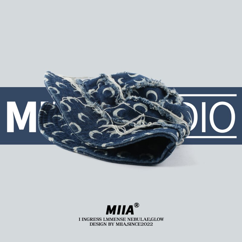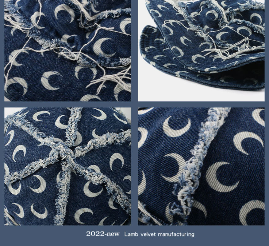 Японская Джинсовая Шляпа-ведро 2023 нишевый дизайнер с принтом Луны, рыбацкая Кепка, модный уличный стиль, ретро, шапки для бассейна для женщин Gorra
