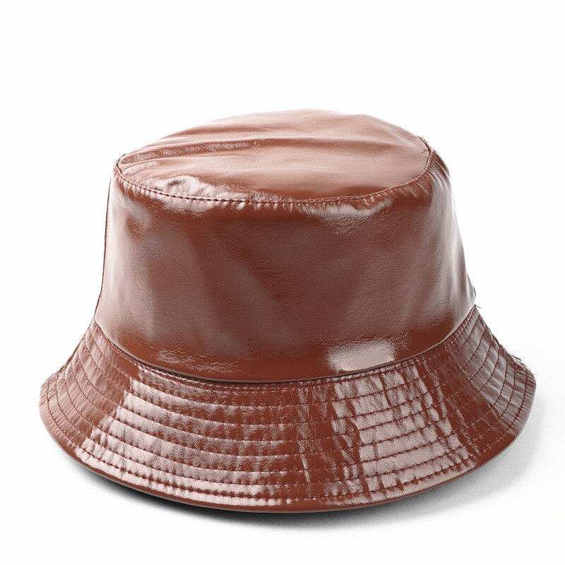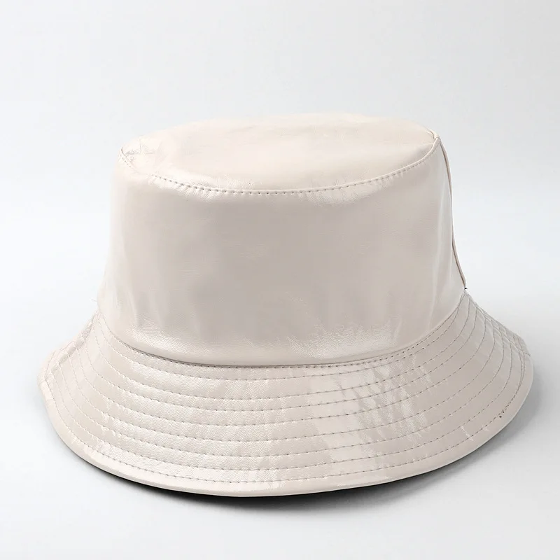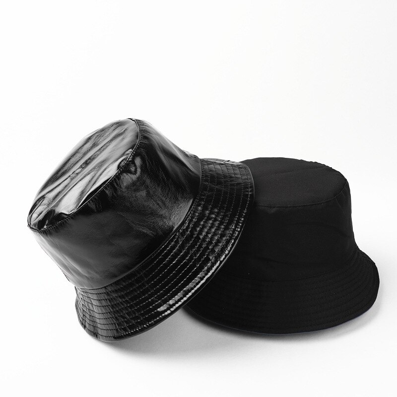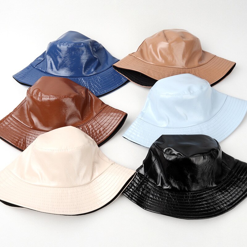 Имя: Новая мода искусственная кожа ведро шляпа для женщин и мужчин Двусторонняя сплошная цветная простая шляпа рыбака унисекс Водонепроницаемая Уличная Повседневная солнцезащитная Кепка