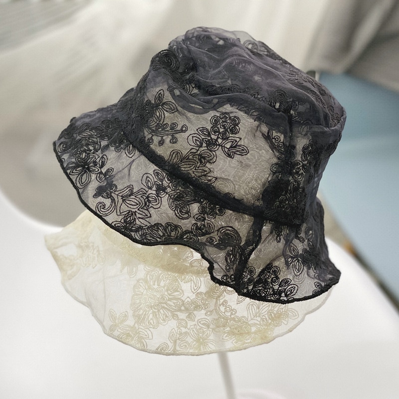 Панама женская кружевная с цветами, модная прозрачная пляжная Панама с высоким верхом, модная дорожная Кепка от солнца с цветами, на лето