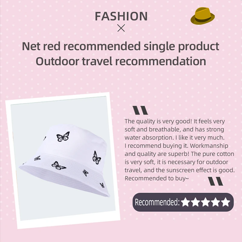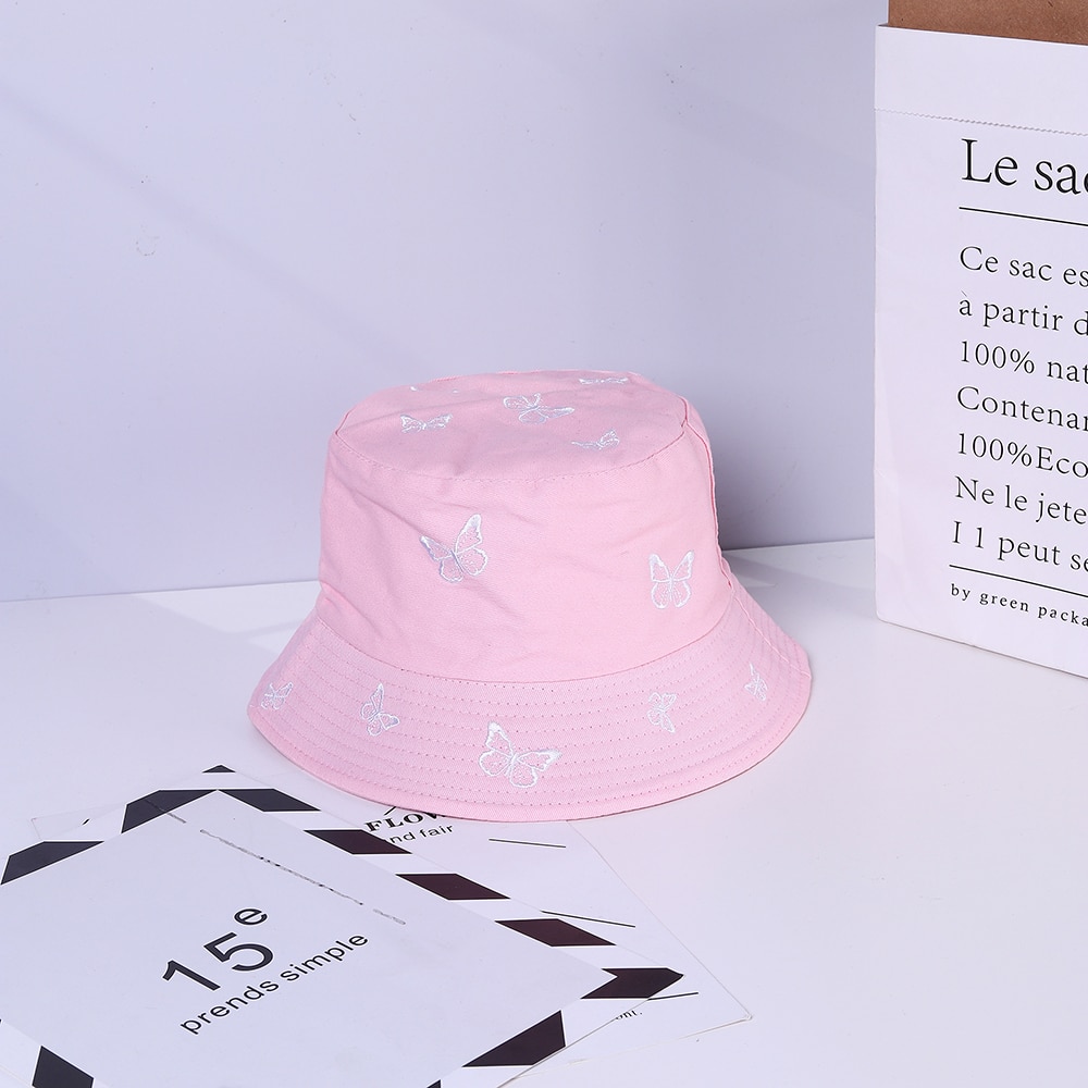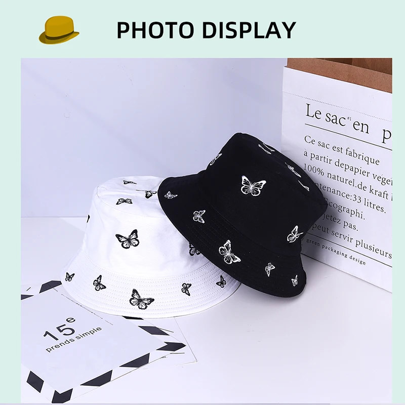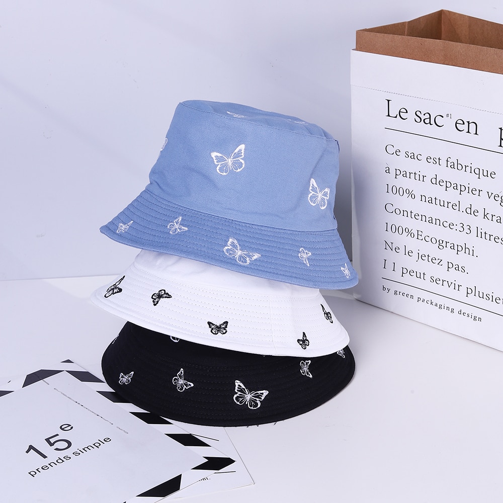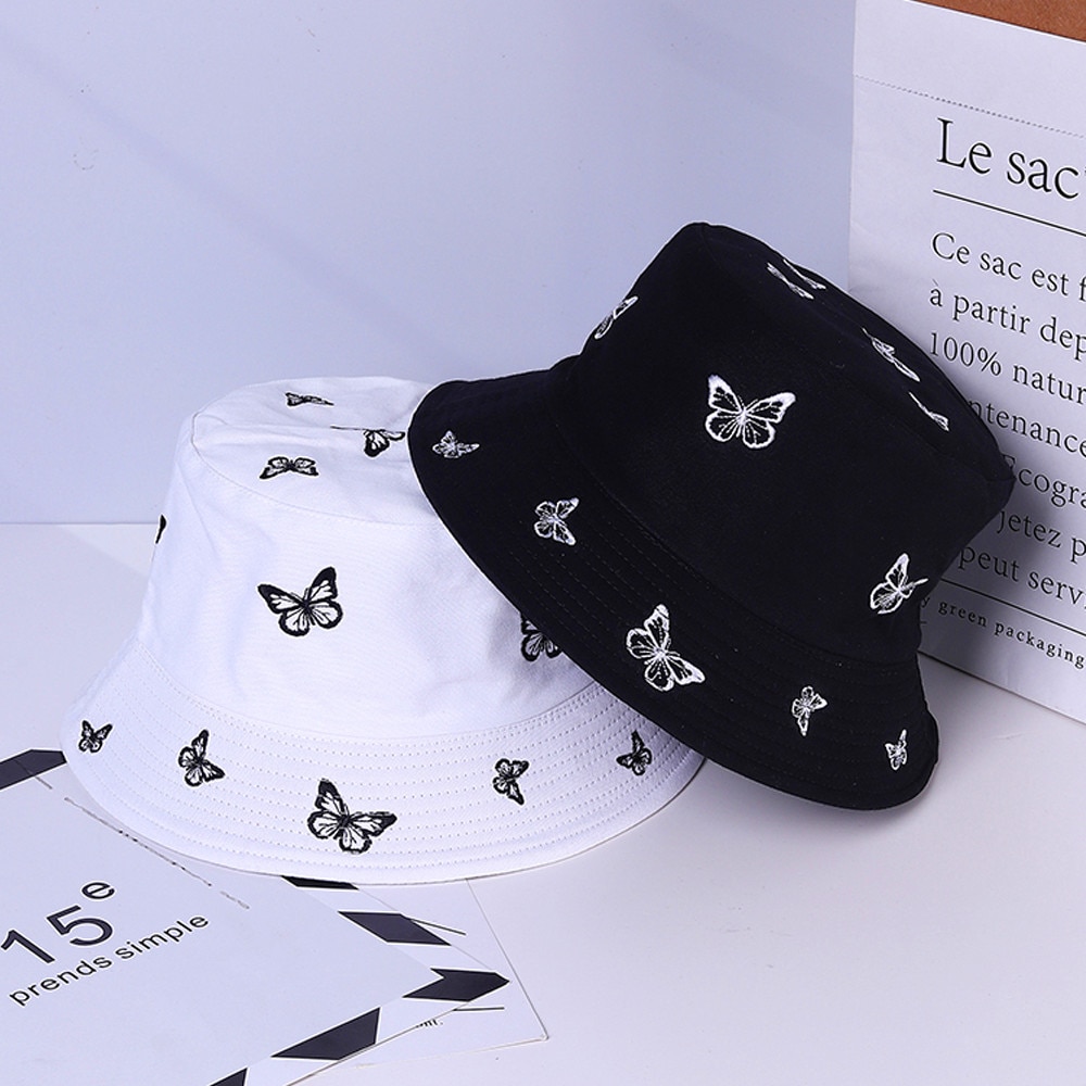 Панама женская с вышивкой бабочки, модная двухсторонняя Панама, пляжная шляпа для защиты от солнца, в стиле кэжуал, лето