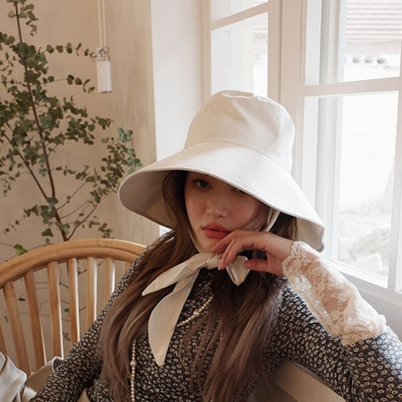 Панама женская складная с широкими полями, хлопковая Панама в французском стиле, на бретельках, с элегантной лентой, для пляжа и отдыха на открытом воздухе