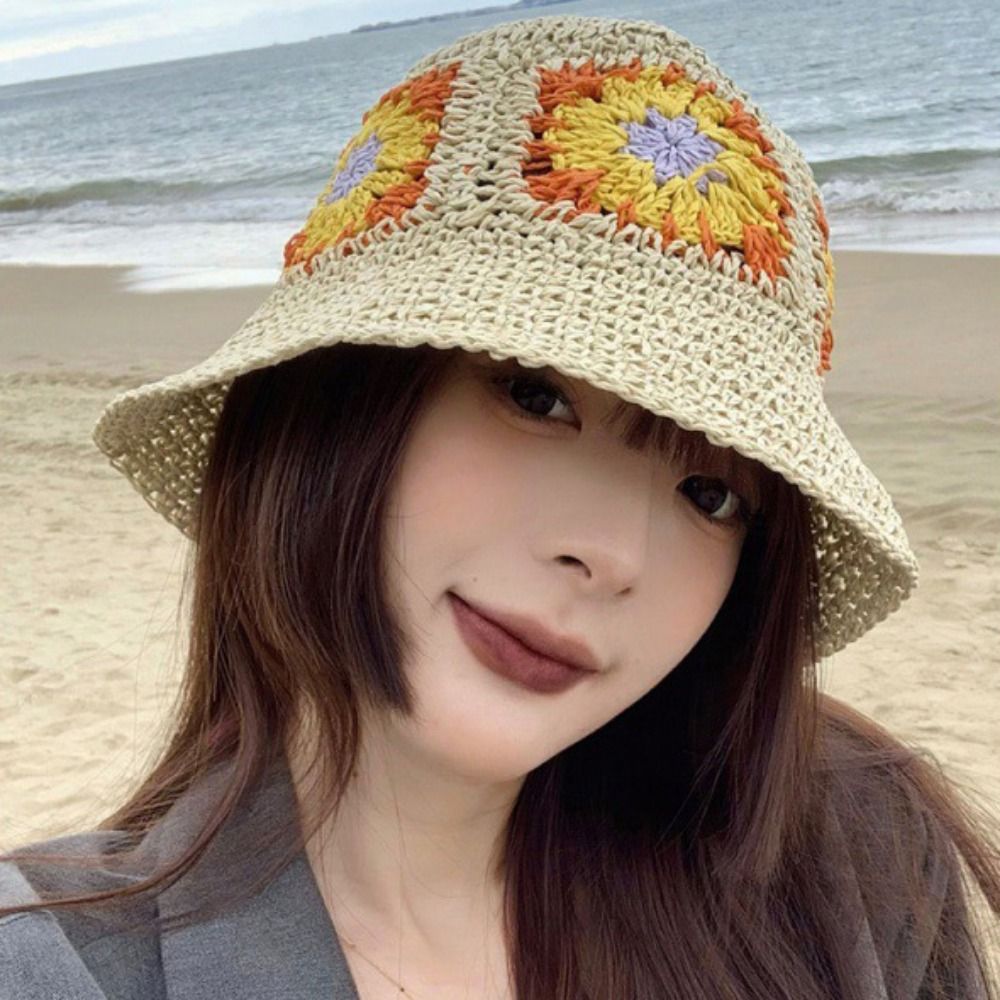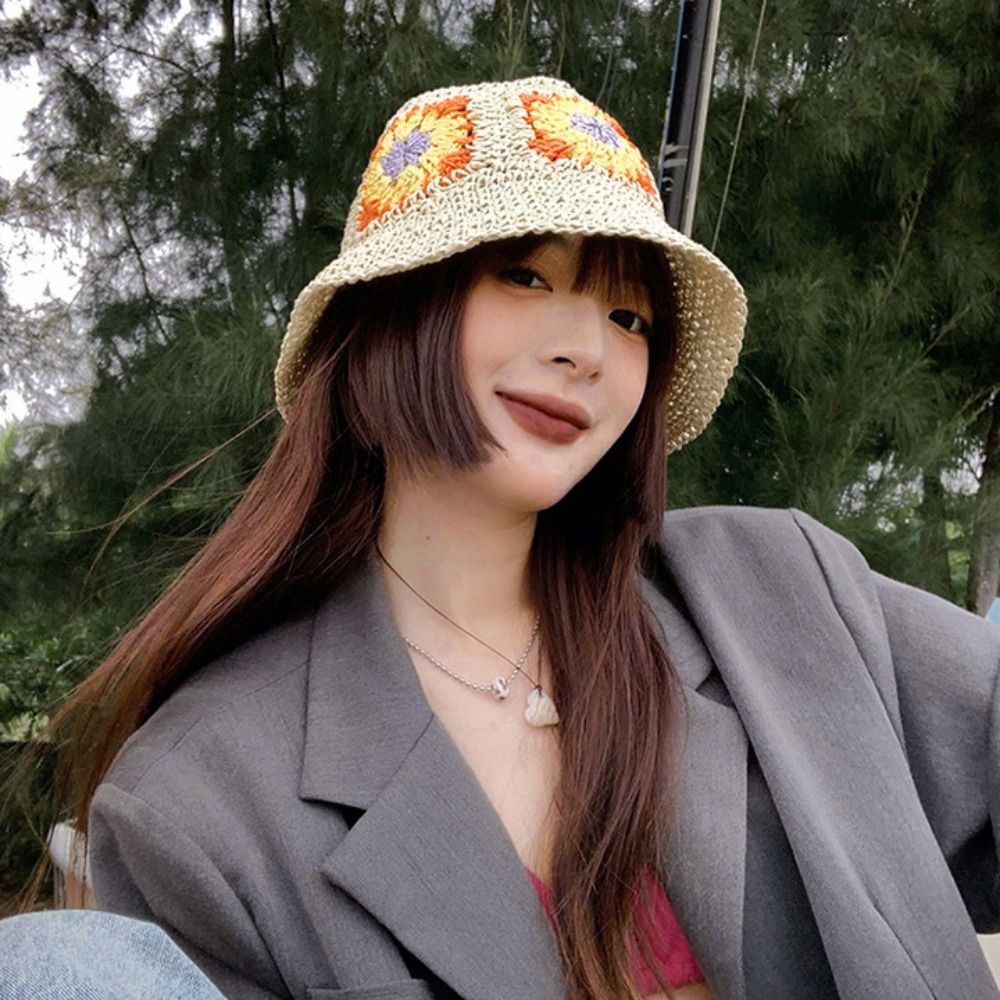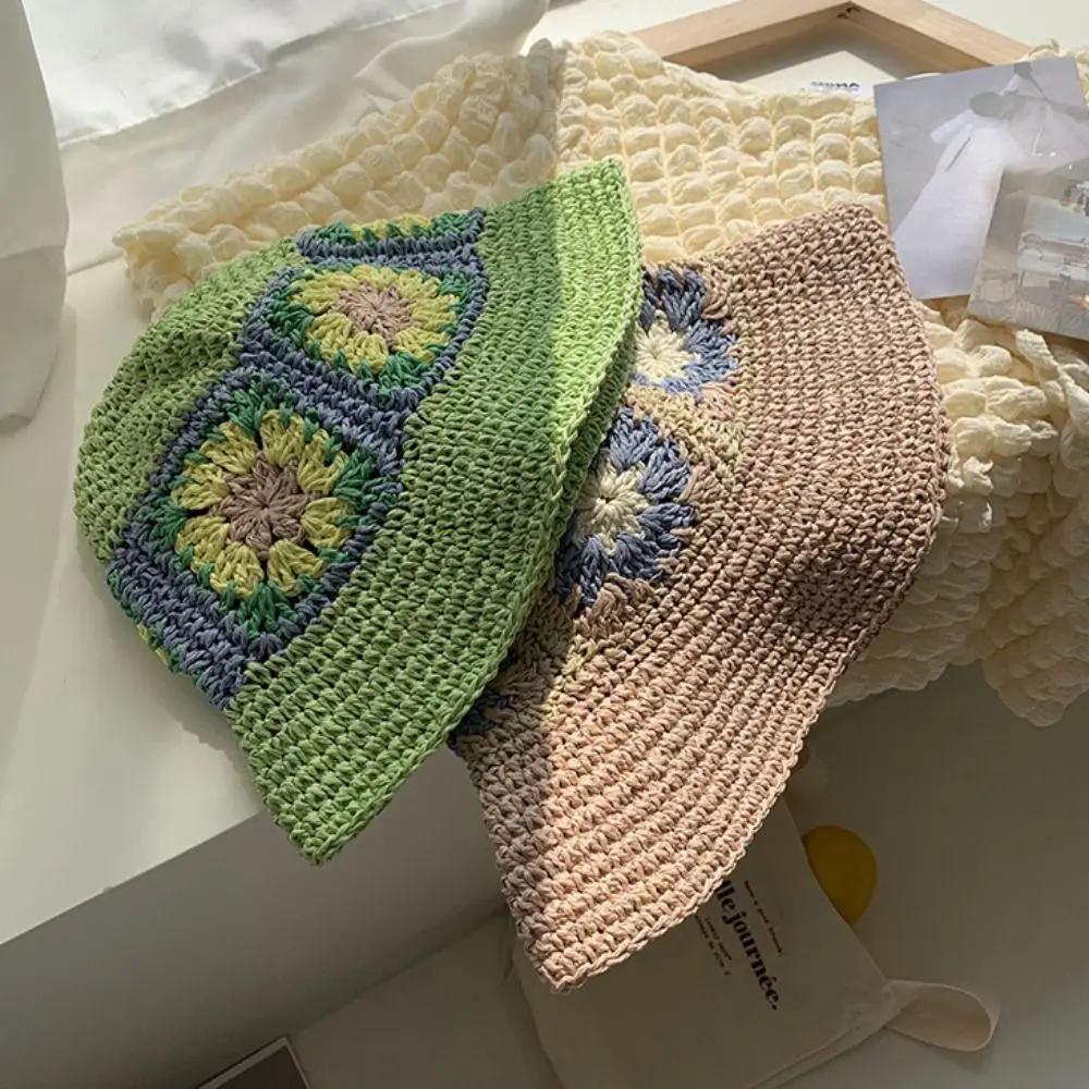 Панама женская Соломенная, плетеная Панама ручной работы с натуральными цветами, воздухопроницаемая, Пляжная Панама от солнца, в японском и корейском стиле, лето