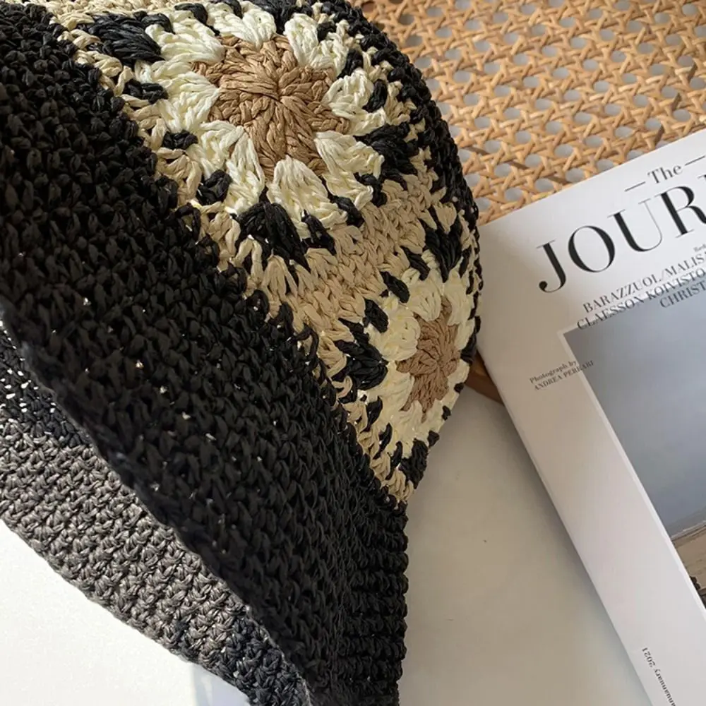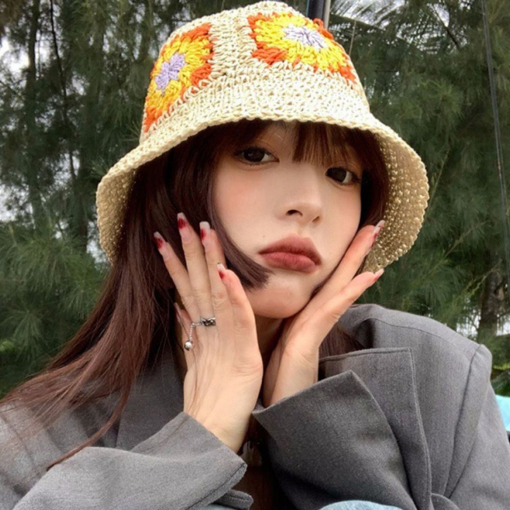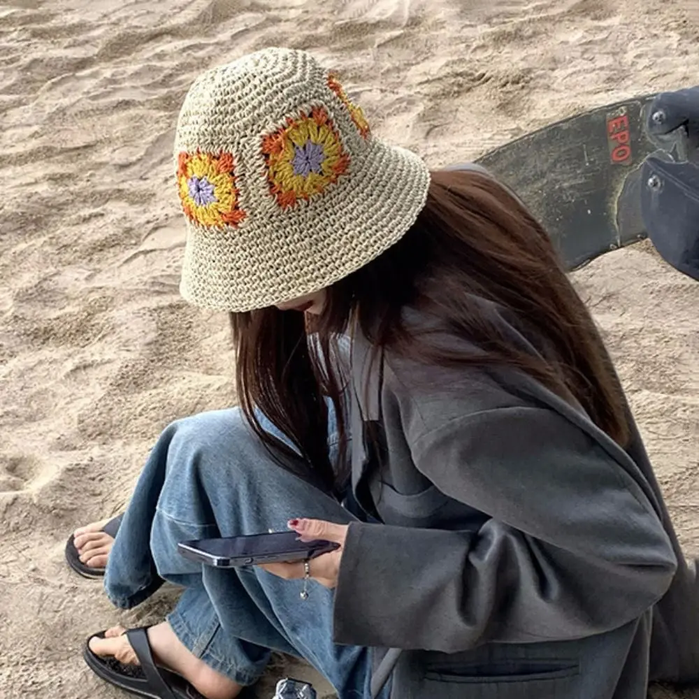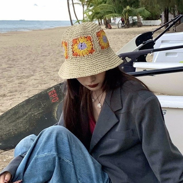 Панама женская Соломенная, плетеная Панама ручной работы с натуральными цветами, воздухопроницаемая, Пляжная Панама от солнца, в японском и корейском стиле, лето