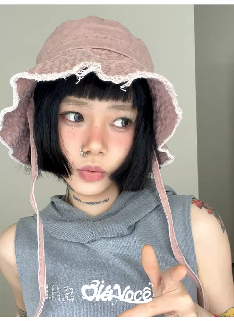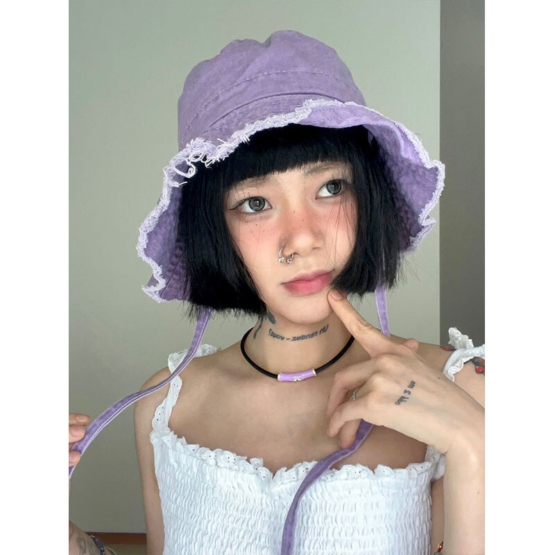 Панама женская универсальная, маленькая шляпа от солнца, с милым японским ремешком для заусенцев, корейский стиль, для студентов, Y2K Loli