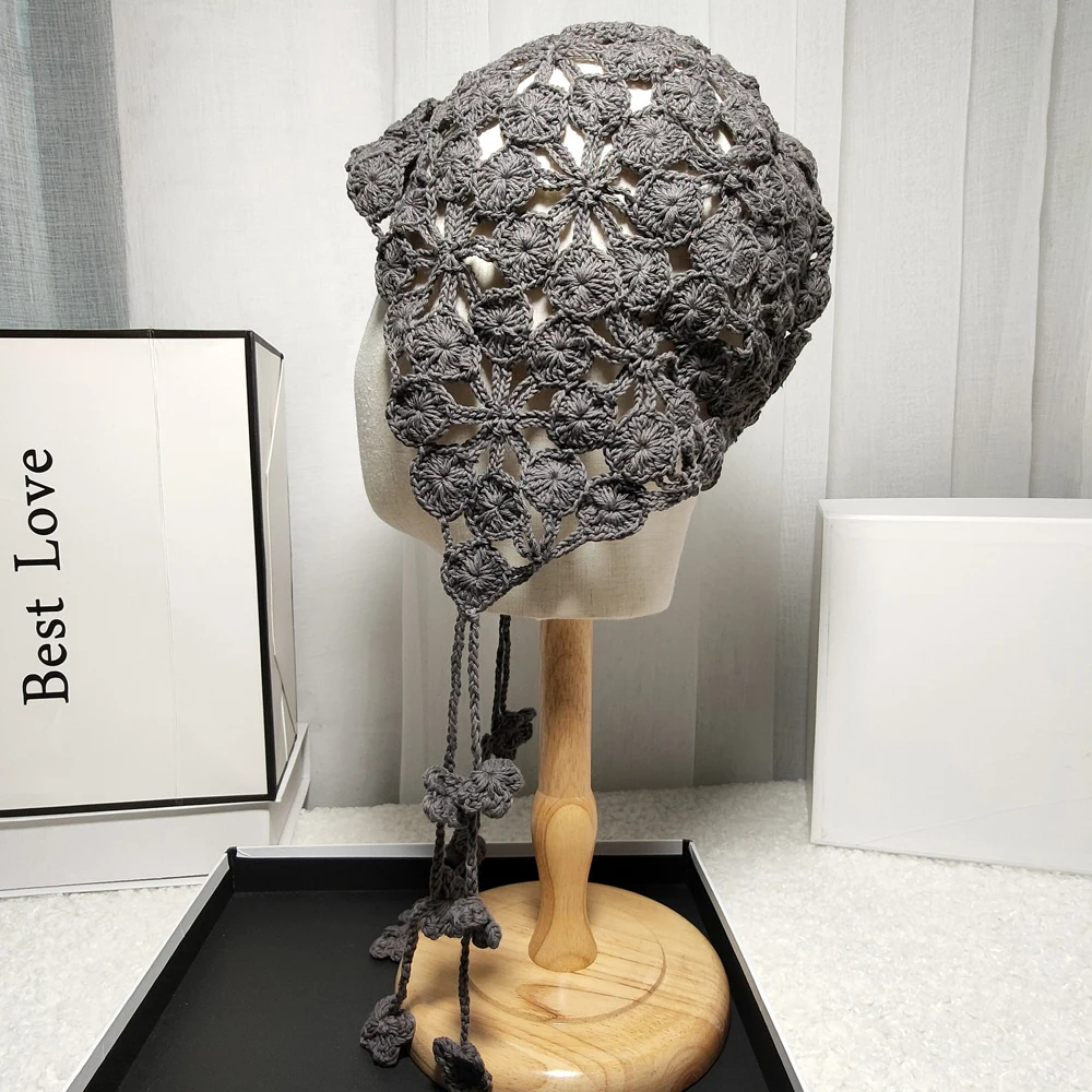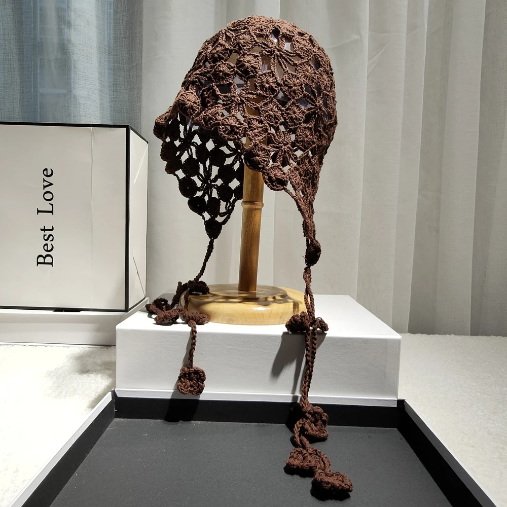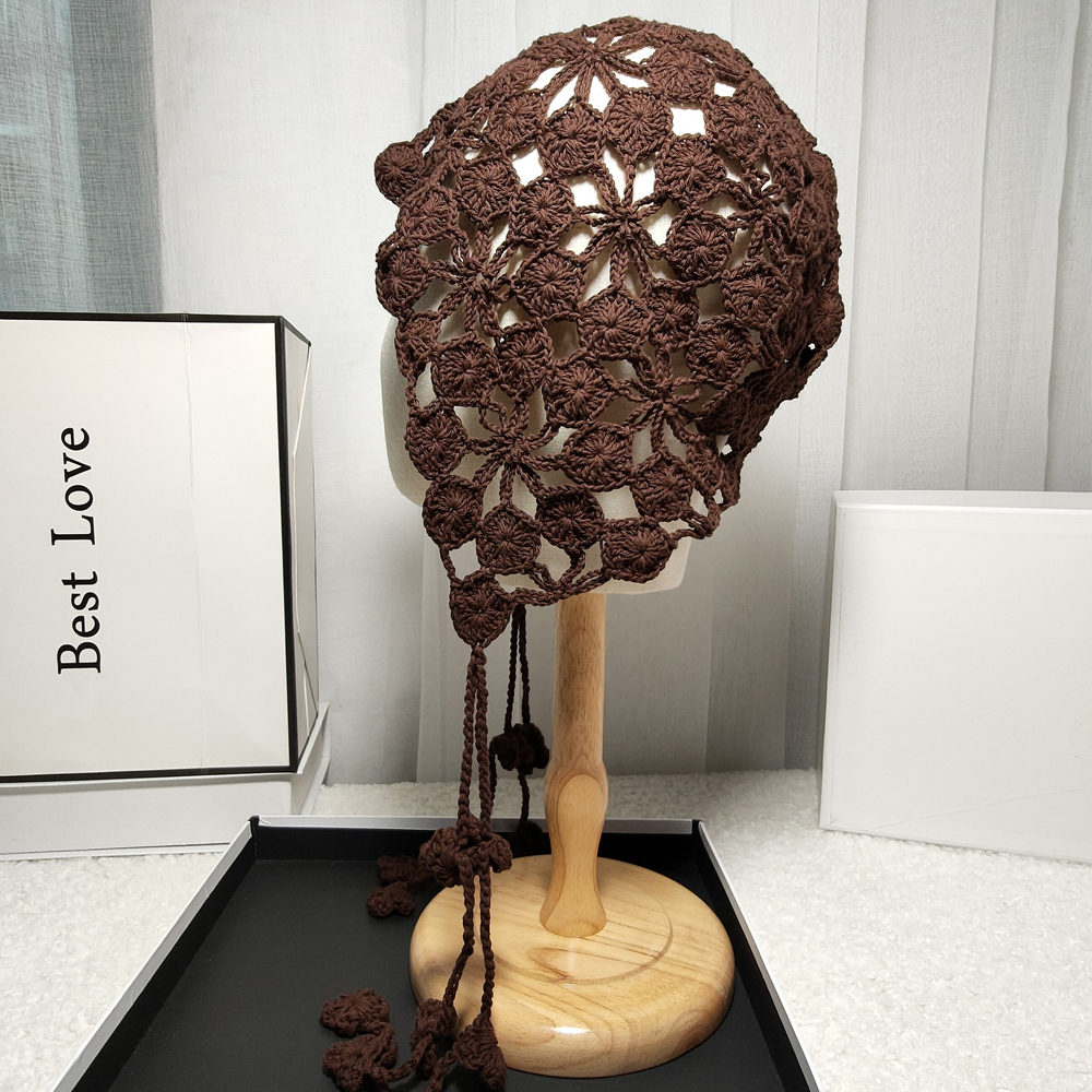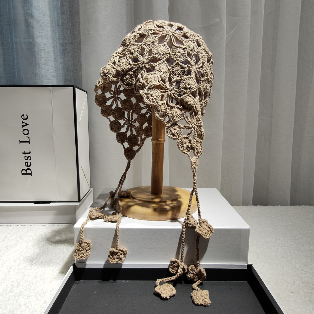Панама женская в этническом стиле, вязаная шапка ручной работы с цветами и лепестками медных монет, с вырезами, ручная работа