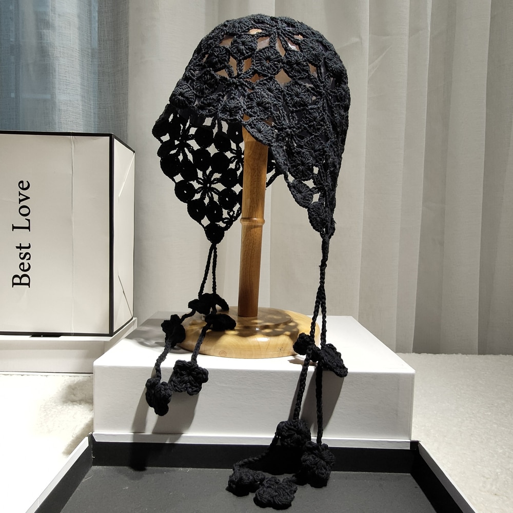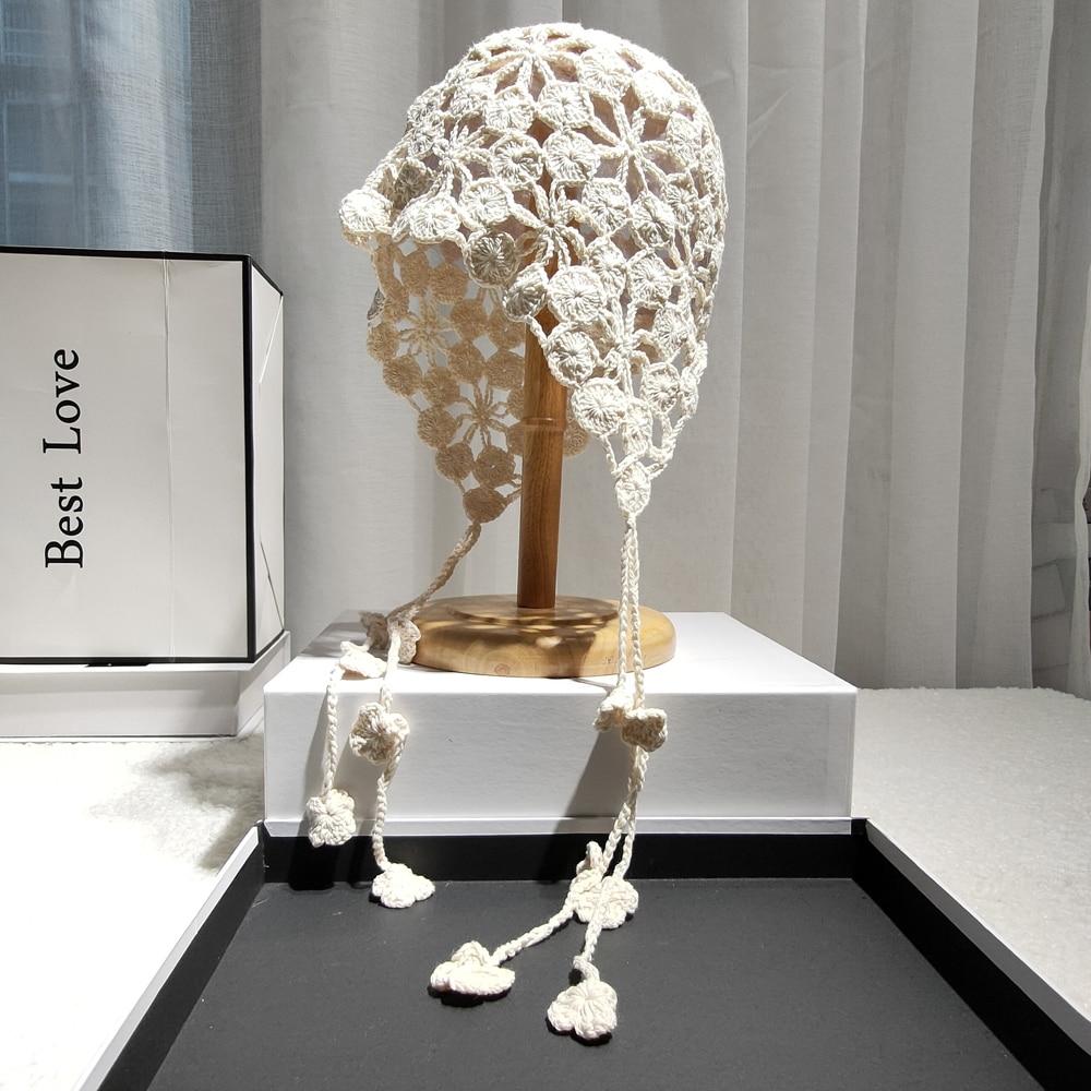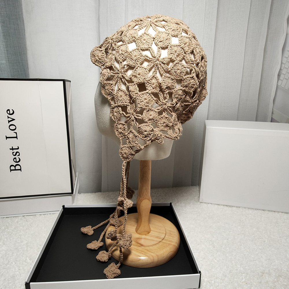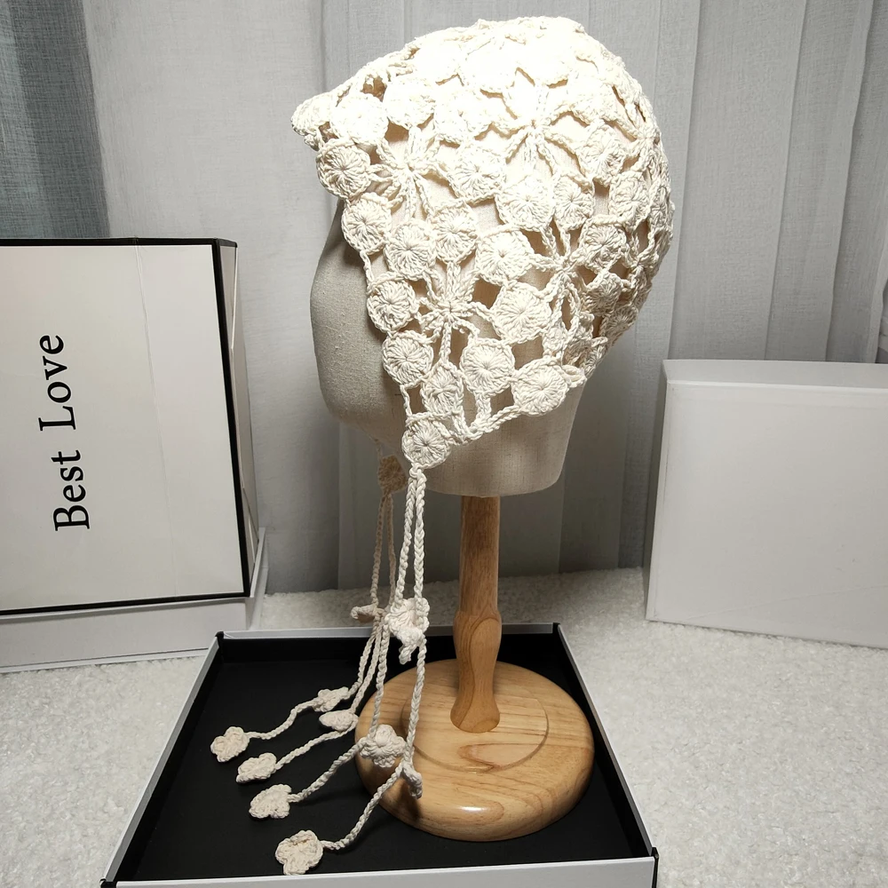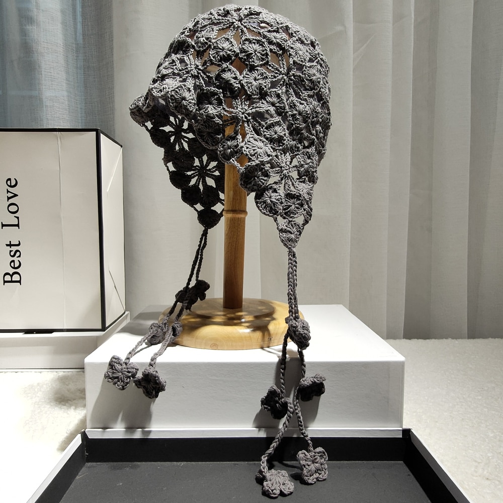 Панама женская в этническом стиле, вязаная шапка ручной работы с цветами и лепестками медных монет, с вырезами, ручная работа