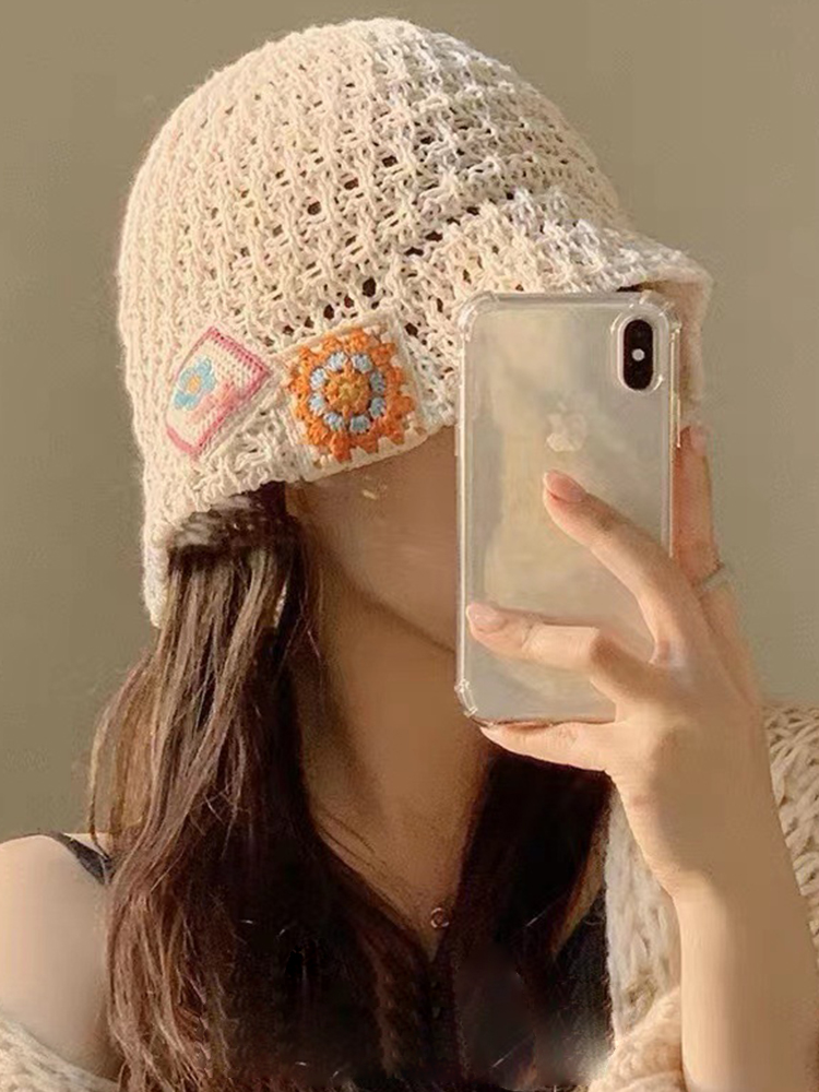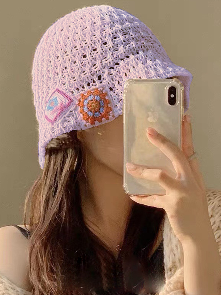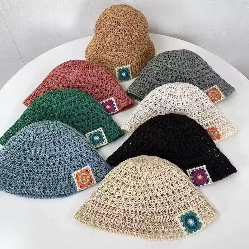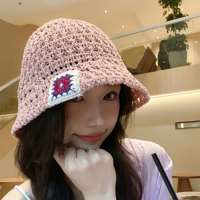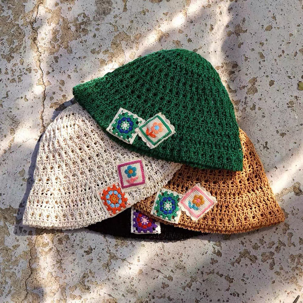 Панама женская вязаная с цветочным рисунком, козырек от солнца для путешествий, рыбаков, шапка для прогулок, весна-лето