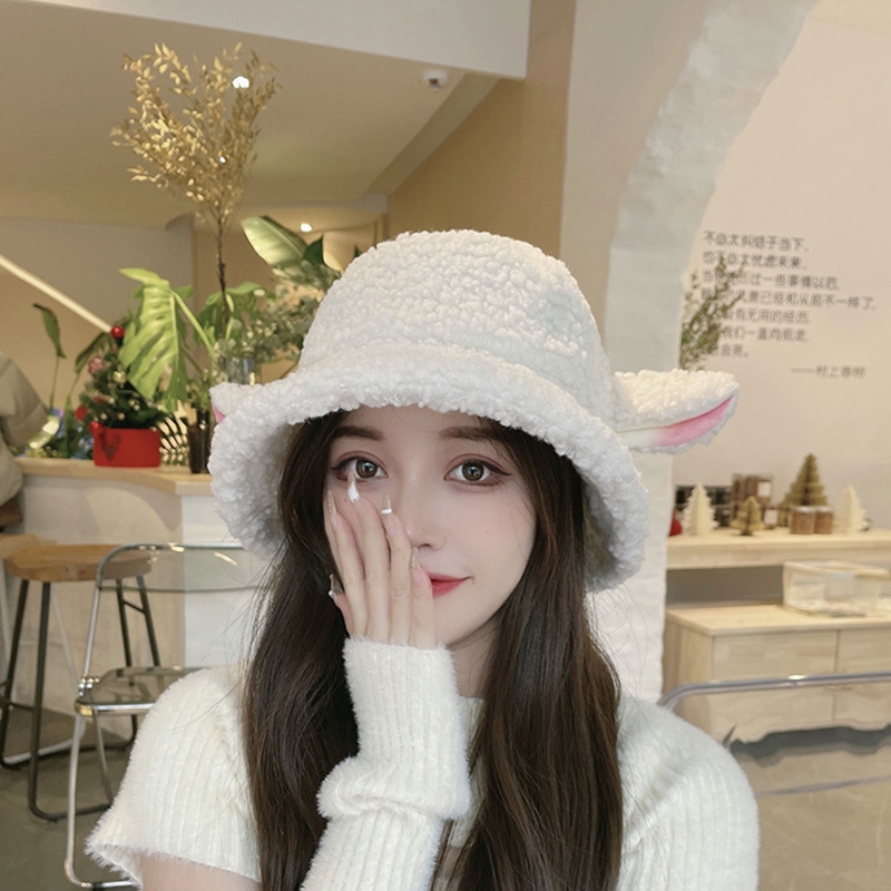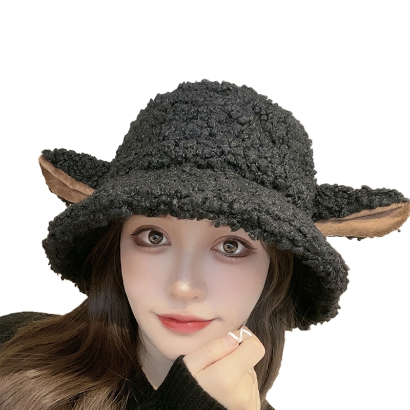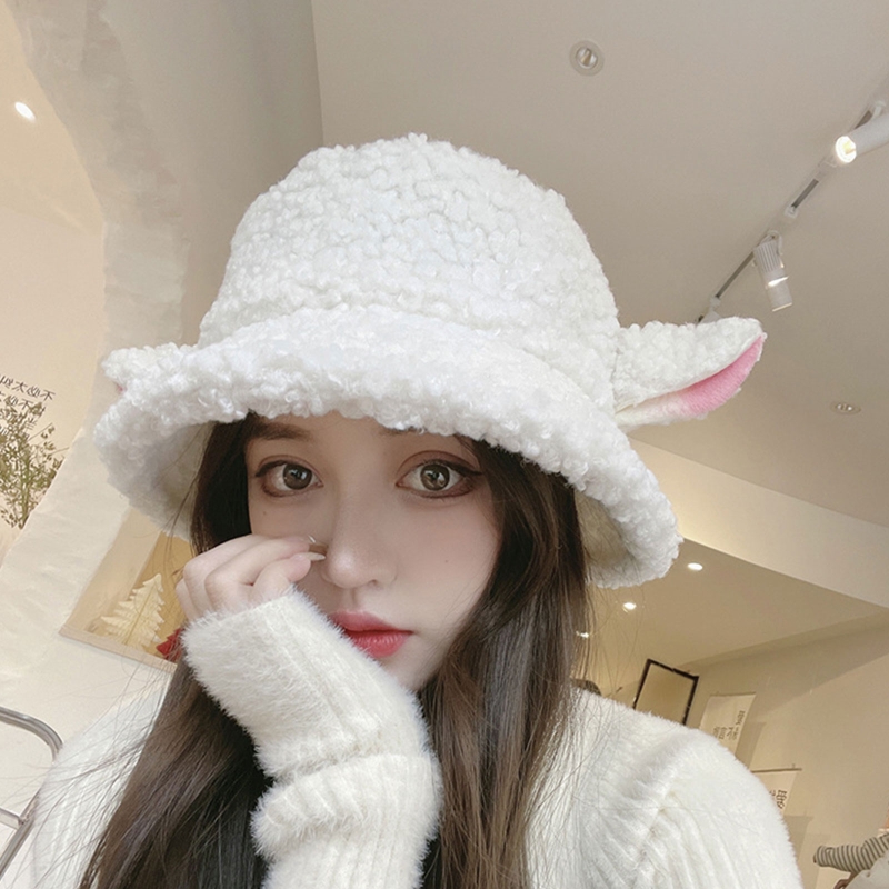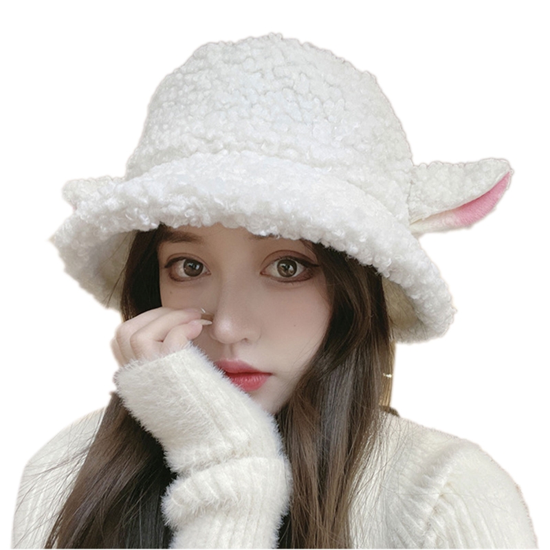 L21E женская панама, винтажная зимняя плюшевая Панама с овечьими ушками для женщин, теплая мягкая женская шапка из искусственного меха в рыбацком стиле