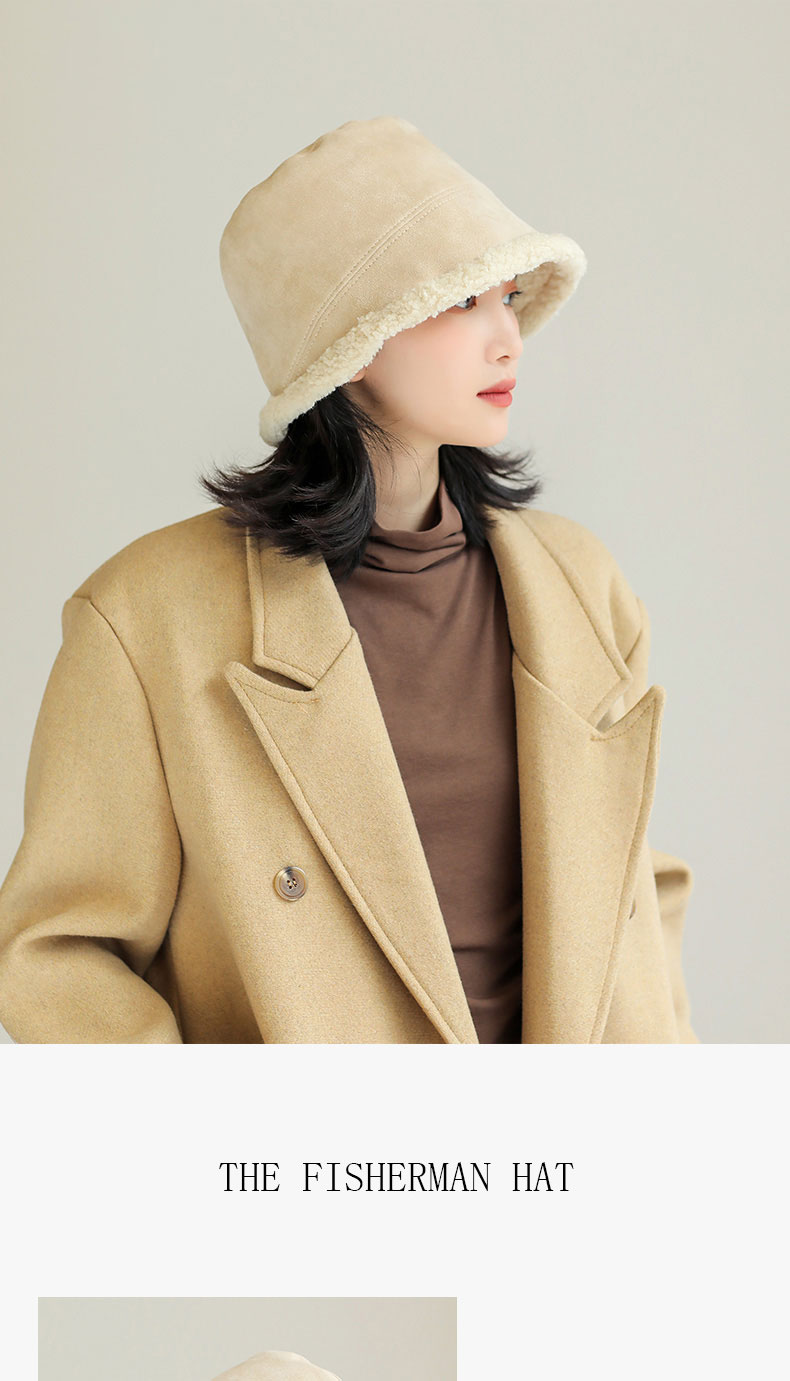 Faux Suede Fuzzy Fleece Cloche Hat Warm Outdoor Fisherman Caps