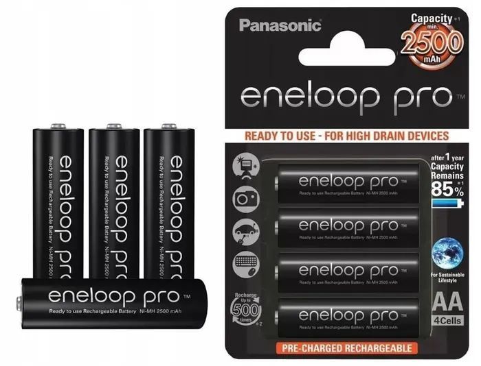 Описание: Аккумулятор R6 PANASONIC eneloop pro, 2500mAh, АА, 4 шт. Аккумуляторные батарейки Panasonic Eneloop ProУТ-00000702 характеризуются увеличенной до 2500 мАч емкостью, что позволяет им обеспечивать бесперебойную работу приборов на протяжении длительного времени. В случае необходимости вы всегда сможете подзарядить данный аккумулятор и использовать заново. Батарейки Panasonic Eneloop ProУТ-00000702 форм-фактором АА незаменимы для установки и обеспечения длительной работы устройств с соответствующим разъемом. В упаковке представлено 4 аккумулятора, поддерживающих до 500 циклов подзарядки. В комплекте идет футляр для батареек.