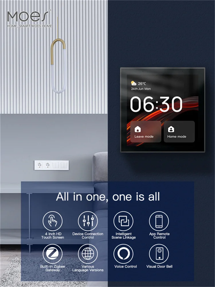Панель управления Zigbee с Wi-Fi, Центральная панель управления, 4 дюйма, сенсорный экран, переключатель, встроенный Alexa, совместим с приложением Alexa Google Home Tuya Smart Life