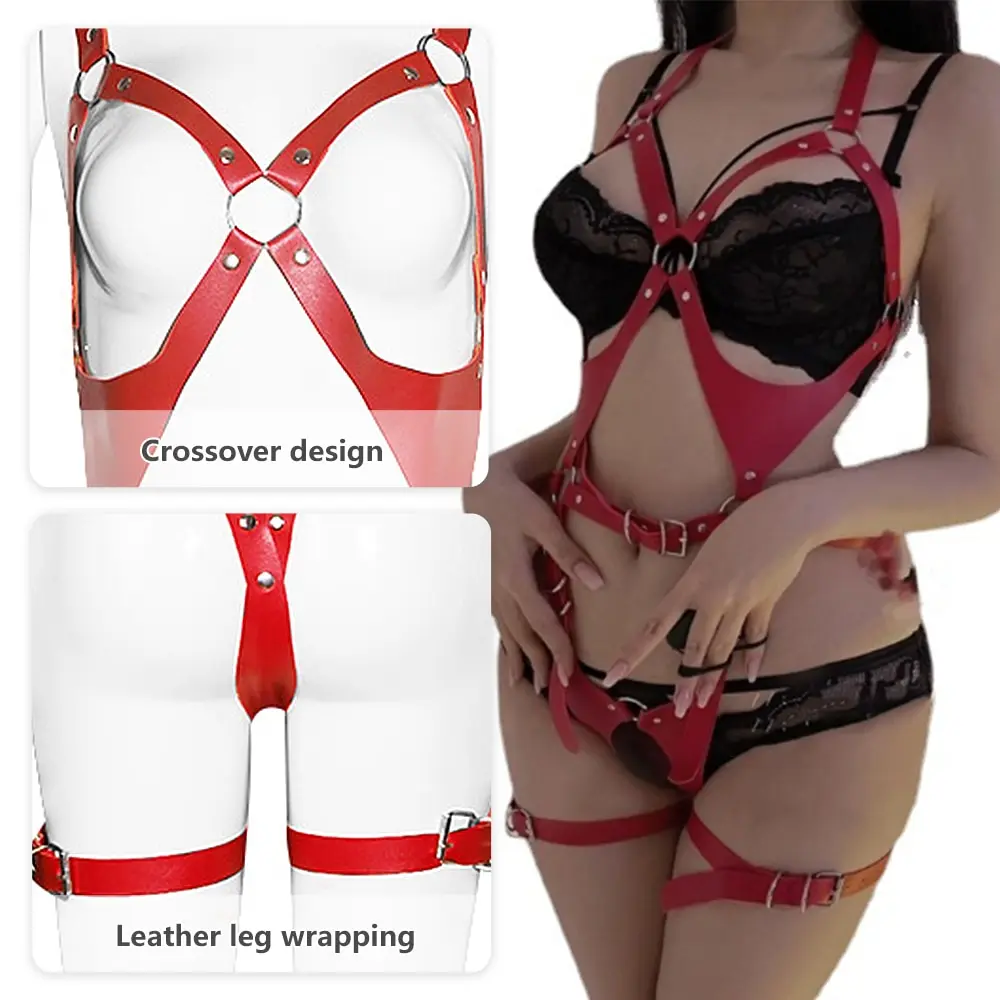 Панк кожаный нагрудный ремень для девушек, сексуальный пояс, женское нижнее белье, ажурное открытое Кожаное украшение на груди