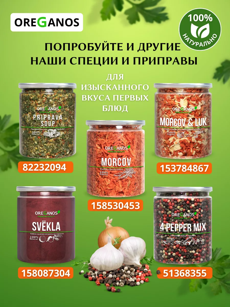 Описание: Смесь красной и зеленой паприки сушеной кусочками резаная обладает нежным, сладким вкусом и придает дополнительную нотку пикантности супам гуляшам соусам рису салатам мясу (особенно свинине и курице) овощам сыру рыбе морепродуктам и даже творогу. При приготовлении горячих блюд хлопья красной и зеленой паприки лучше добавлять в конце готовки, чтобы плоды перца не передали излишнюю горечь блюду. Смесь болгарских перцев дробленая станет прекрасным источником дополнительной клетчатки в Вашем рационе, что снижает риск развития многих типов онкологий. Наша приправа (специя пряность сухофрукты травы, цукаты, орехи) прекрасно подойдут как кулинарный подарок, необычный домашний интересный креативный красивый и оригинальный подарок : подруге или другу коллеге папе маме любимому или любимой дедушке бабушке сыну сестре Кулинару повару. Даже Без повода просто так, для себя. Ознакомьтесь с полным ассортиментом ТМ ОРЕГАНОС и используйте другие наши приправы , специи , пряности для приготовлении праздничного стола на день рождения юбилей 14 февраля Рождество День матери День отца на Пасху или в пост и иные праздники, и Вы останетесь довольны! Мы искренне рады доставить Вам гастрономическое удовольствие ! А наша герметичная упаковка (банка с герметичной крышкой) помогает сохранить аромат специи, приправ и пряностей, также защищает от влаги. Банка длительного срока эксплуатации, всё для Вашего удобства! Радуйте своих близких вкусными блюдами с приправами и специями ТМ OREGANOS ! Прекрасно подходит для кафе и ресторанов.