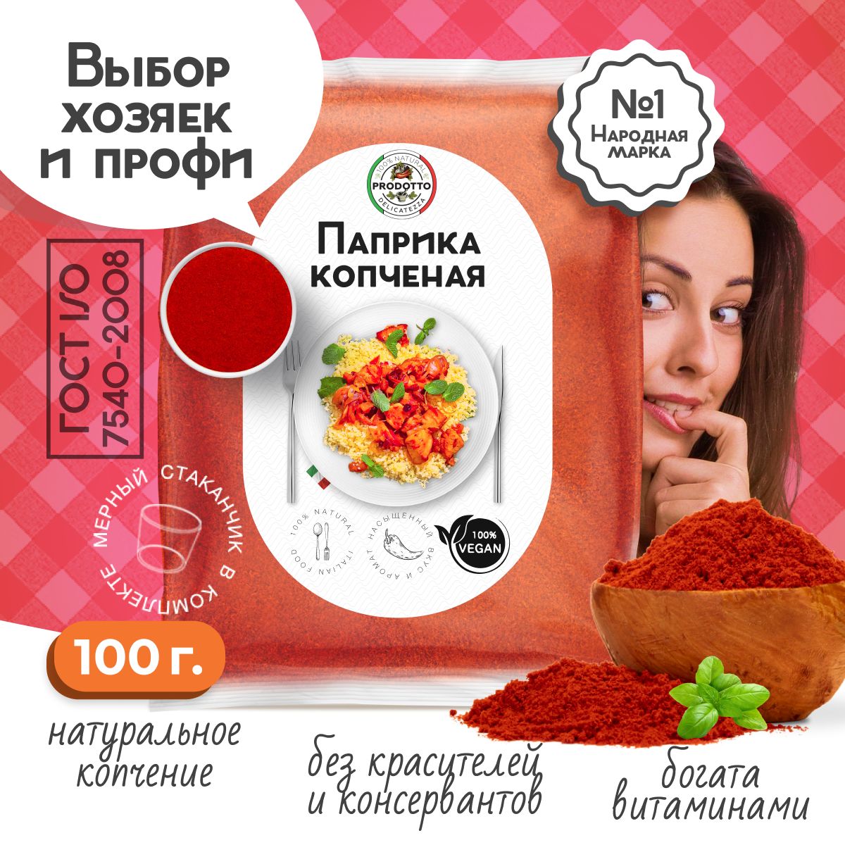 Описание: Копченая паприка обладает глубоким ароматом с неповторимыми дымными нотками. Эта пряность популярна во всем мире. Помимо кулинарных целей, ароматную специю используют в качестве пищевого красителя при приготовлении выпечки. Благодаря копченой молотой паприке вкус пирожков или рулетов становится более богатым. Молотая паприка, может иметь оранжевый или темно-красный оттенок. Благодаря своему пикантному дымному аромату приправа придает необычный вкус блюдам с фасолью, тушеной говядине, запеканкам. Паприку добавляют в мясо, курицу, гриль, плов, мясные рулеты, шашлыки, барбекю, заправки для салатов, супы, картофель, чоризо, копчености, колбасы, колбаски и домашние соусы. Пикантная копченая пряность богата набором витаминов и микроэлементов. При правильном хранении специя долгое время сохраняет свои полезные свойства. Порошок следует хранить в герметично закрывающимся контейнере, в защищенном от проникновения солнечных лучей месте. В ее составе содержится большое количество селена, цинка, натрия, меди. При регулярном употреблении в пищу пиментон положительно воздействует на организм: