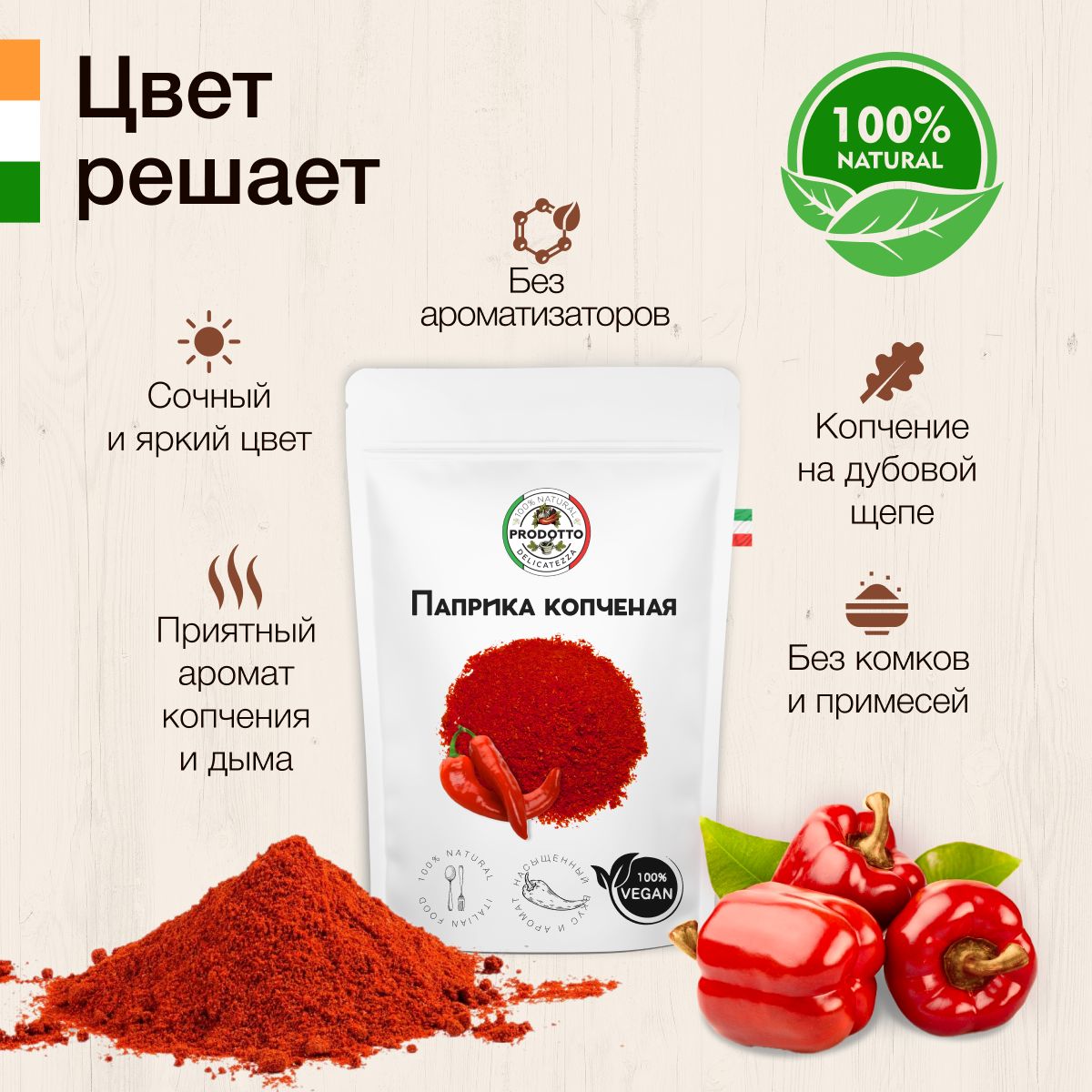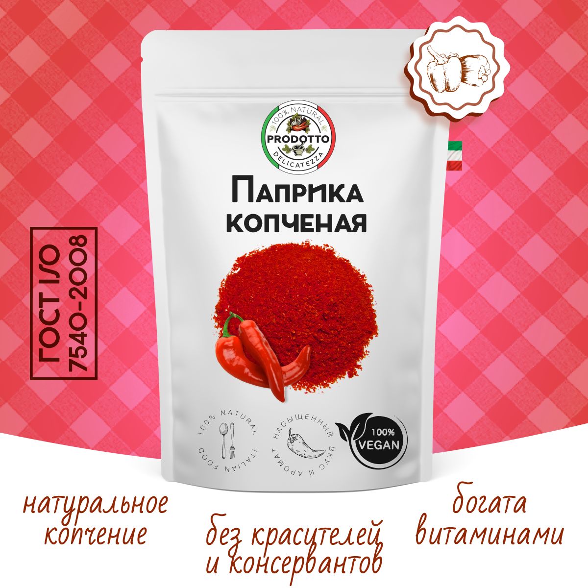 Описание: Копченая паприка обладает глубоким ароматом с неповторимыми дымными нотками. Эта пряность популярна во всем мире.